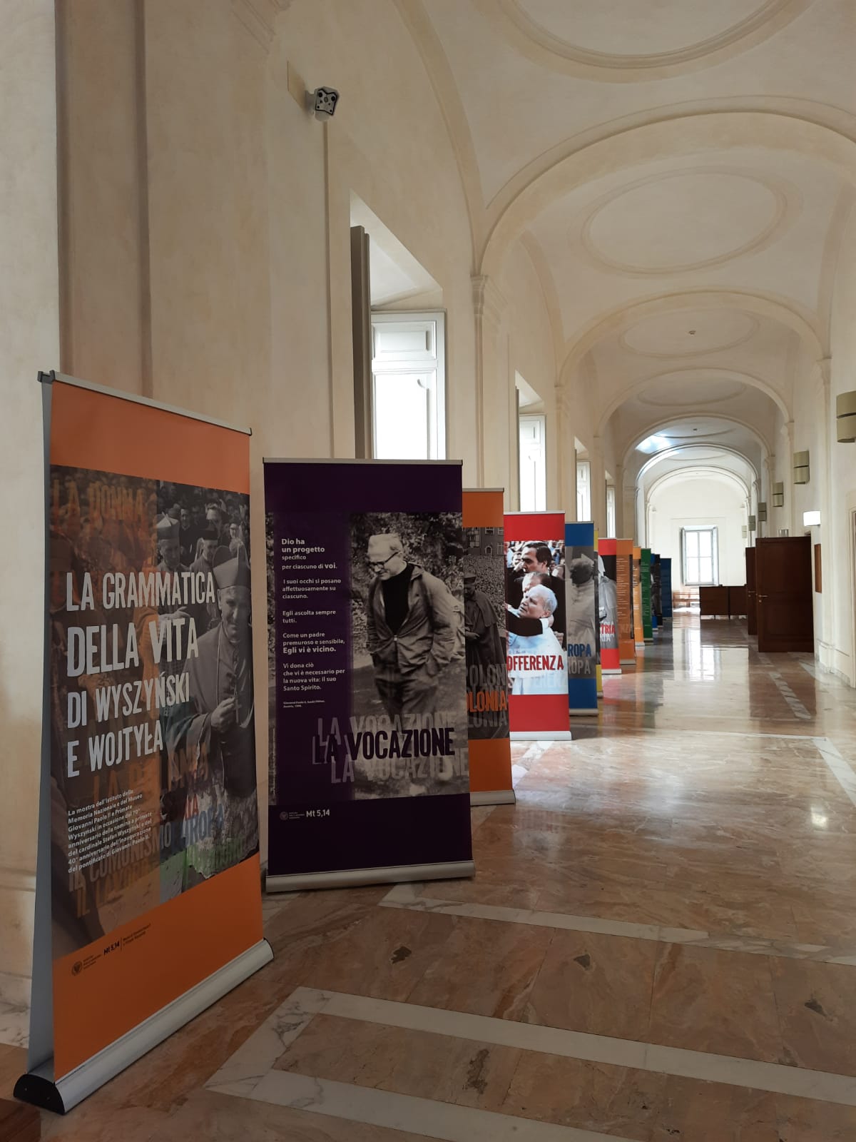 Prezentowana na Uniw. Św. Krzyża pierwotnie została przygotowana przez Biuro Edukacji Narodowej IPN oraz Muzeum Jana Pawła II i Prymasa Wyszyńskiego z okazji przypadającego w październiku 2018 r. 70. jubileuszu objęcia przez Stefana Wyszyńskiego tronu prymasowskiego i 40. rocznicy wyboru Karola Wojtyły na papieża. Wersja wystawy prezentowana w Rzymie została przygotowana przy wsparciu placówki w dwóch wersjach językowych: włoskiej i angielskiej, z myślą o międzynarodowych odbiorcach z całego świata, którzy studiują i odwiedzają papieską uczelnię. Jest ona prezentowana w reprezentacyjnym korytarzu uniwersytetu. Wystawa przyciągała odwiedzających już w momencie jej rozstawienia, na co zwrócili uwagę przedstawiciele IPN. Wystawa będzie prezentowana do 22 czerwca br.