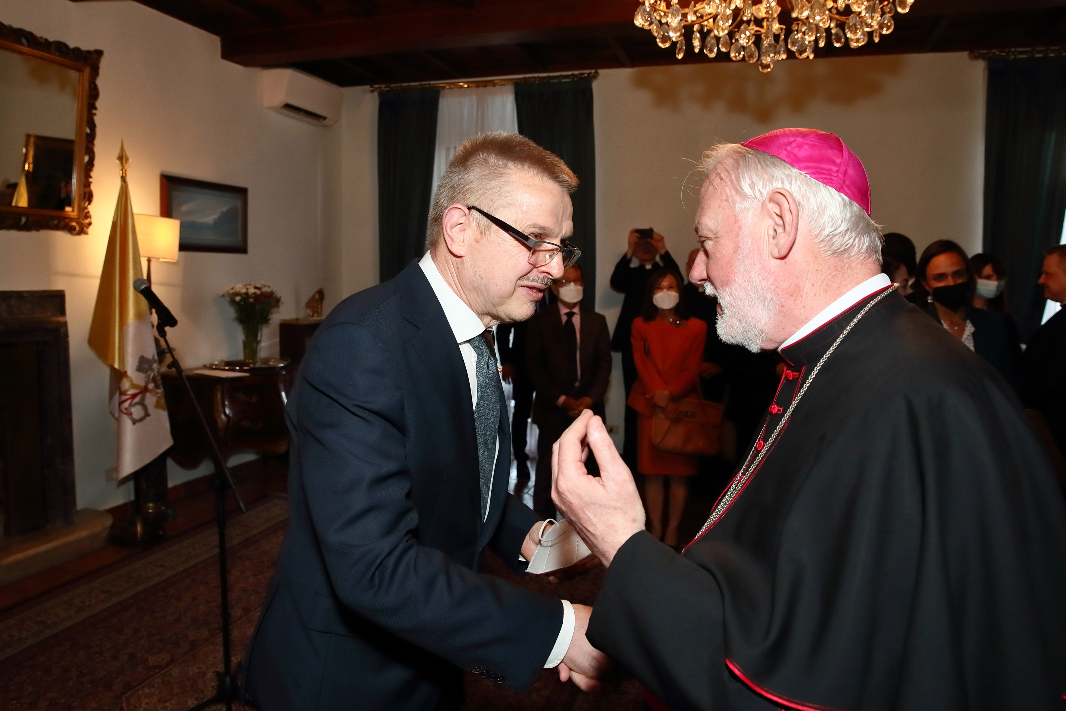 W uroczystości wzięli licznie udział przedstawiciele Stolicy Apostolskiej, korpusu dyplomatycznego, mediów, pracowników uczelni papieskich, zgromadzeń zakonnych oraz Polonii. Obecny był abp Paul R. Gallagher - Sekretarz ds. Relacji z Państwami Sekretariastu Stanu Stolicy Apostolskiej oraz szef protokołu, Monsignore Joseph Murphy.