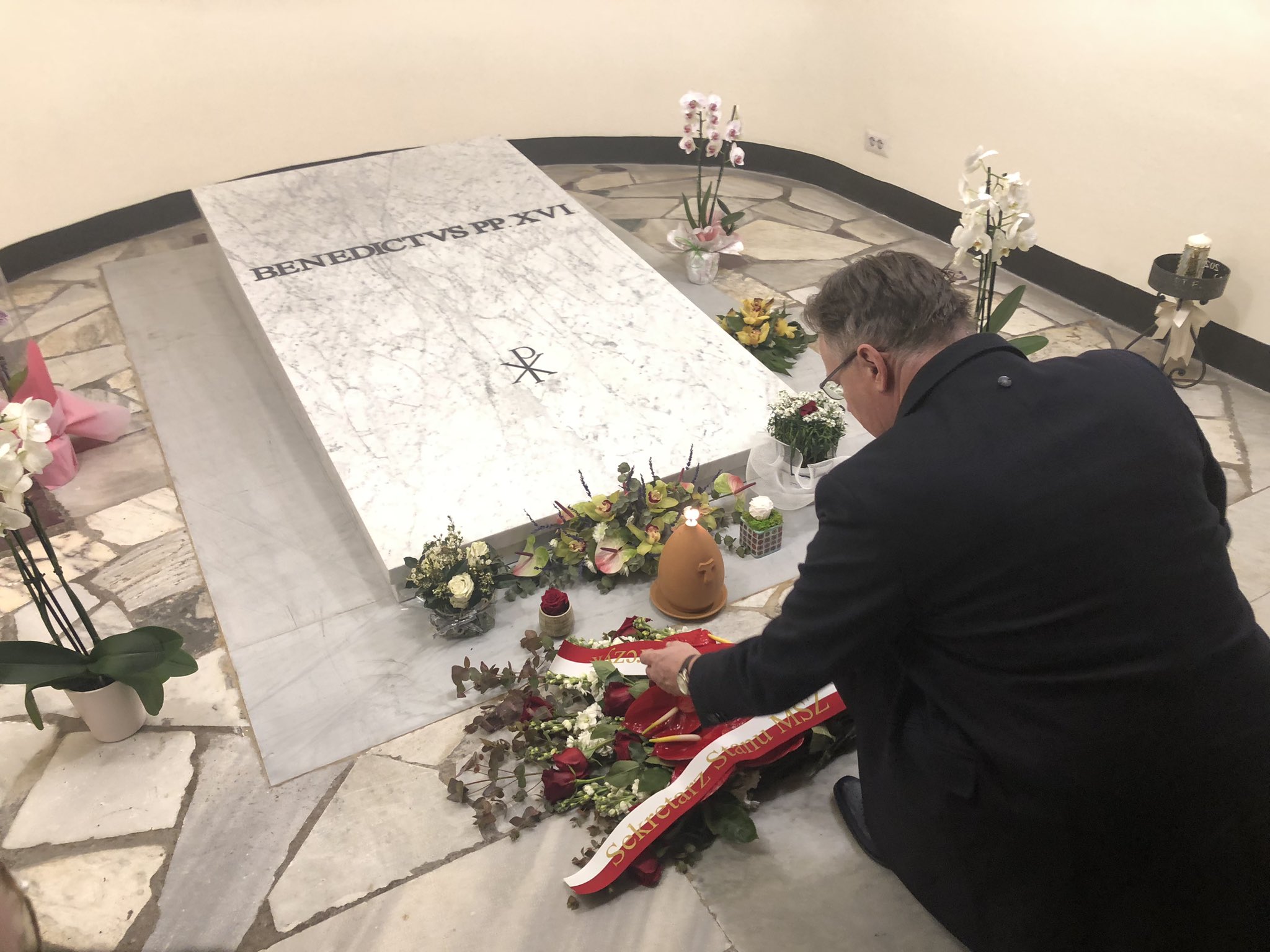 Wiceszef polskiej dyplomacji złożył kwiaty na grobach św. Jana Pawła II oraz Benedykta XVI.