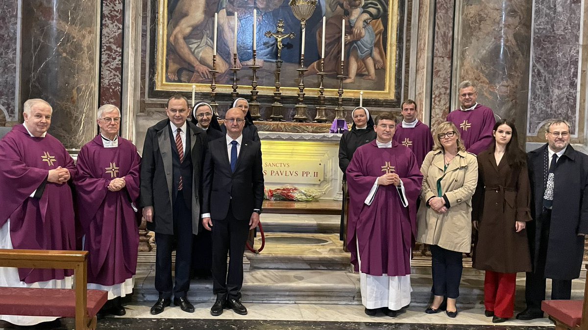 Sekretarz Stanu w w towarzystwie Ambasadora złożył kwiaty i uczestniczył we mszy św. przy grobie św. Jana Pawła II.