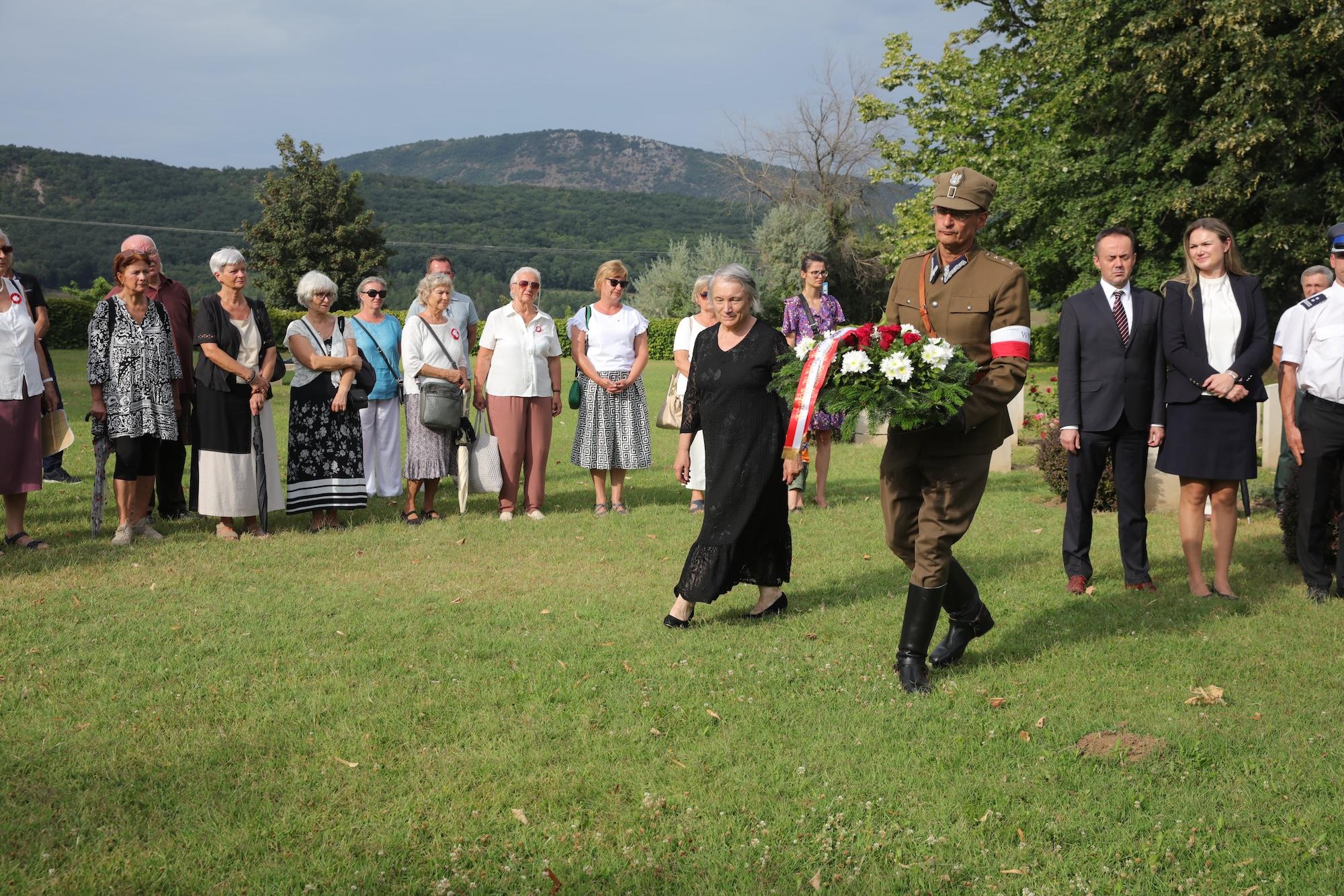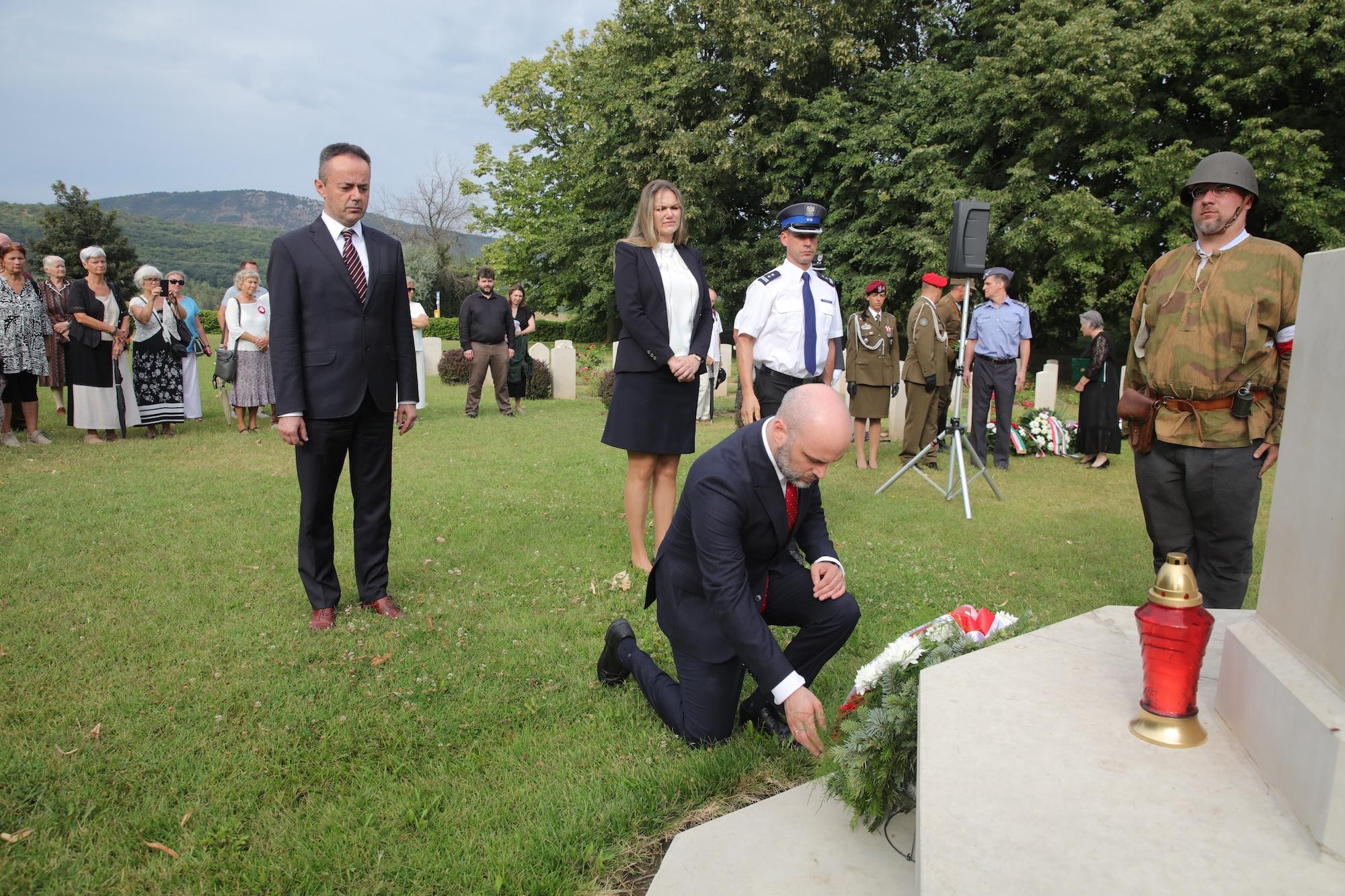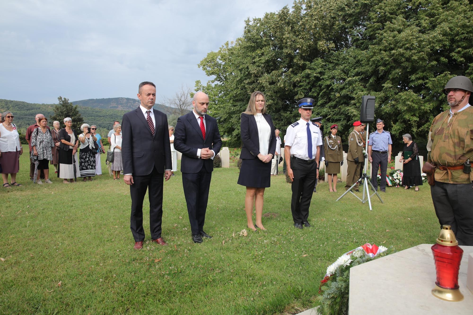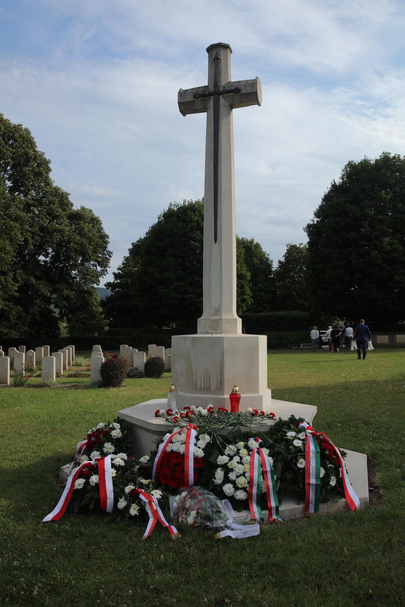 Przy krzyżu pamięci w centralnej części cmentarza wiązankę biało-czerwonych kwiatów złożył ambasador RP na Węgrzech Sebastian Kęciek, któremu towarzyszyli konsul RP Andrzej Kalinowski, dyrektor Instytutu Polskiego w Budapeszcie Dominika Teske oraz oficer łącznikowy polskiej policji mł. inspektor Bogusław Kołdys. Hołd poległym oddali attaché obrony płk Sławomir Mnitowski wraz z polskimi oficerami stacjonującymi na Węgrzech. W imieniu środowiska polskiego i polonijnego kwiaty złożyli m.in. rzecznik narodowości polskiej przy Zgromadzeniu Krajowym (parlamencie) Węgier Ewa Słaba Rónayné, prezes współorganizatora wydarzenia – Polskiego Stowarzyszenia Kulturalnego im. Józefa Bema na Węgrzech Mária Dávid, a także przedstawiciele samorządów i organizacji polonijnych.