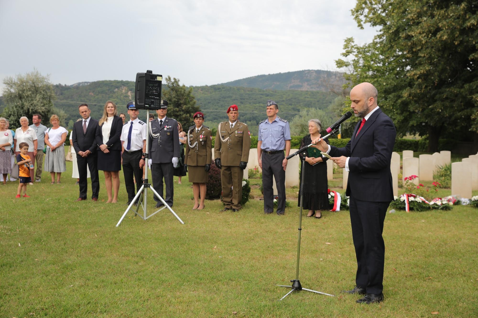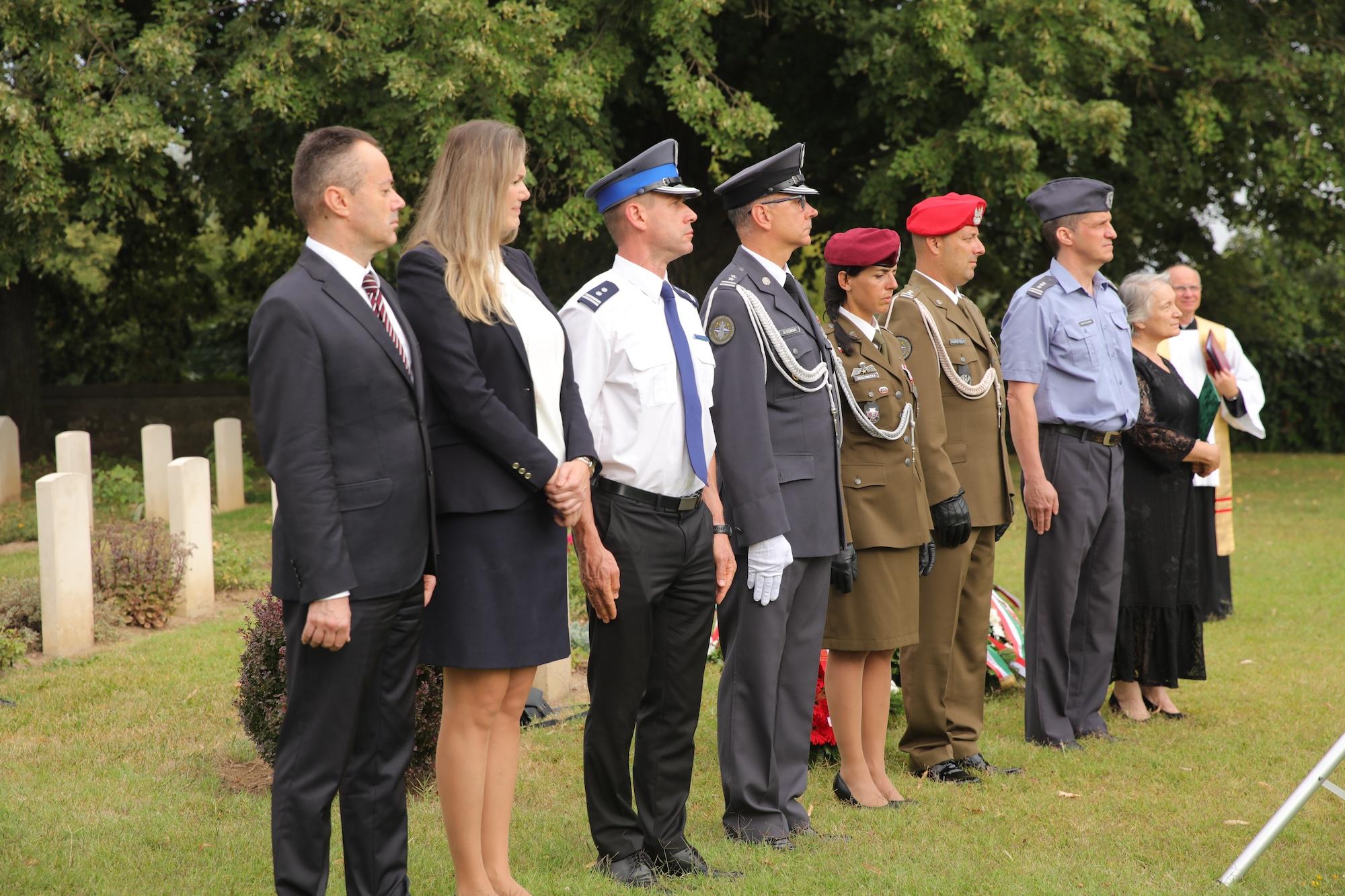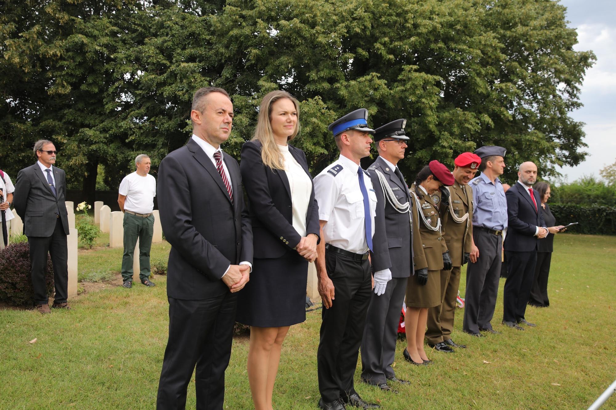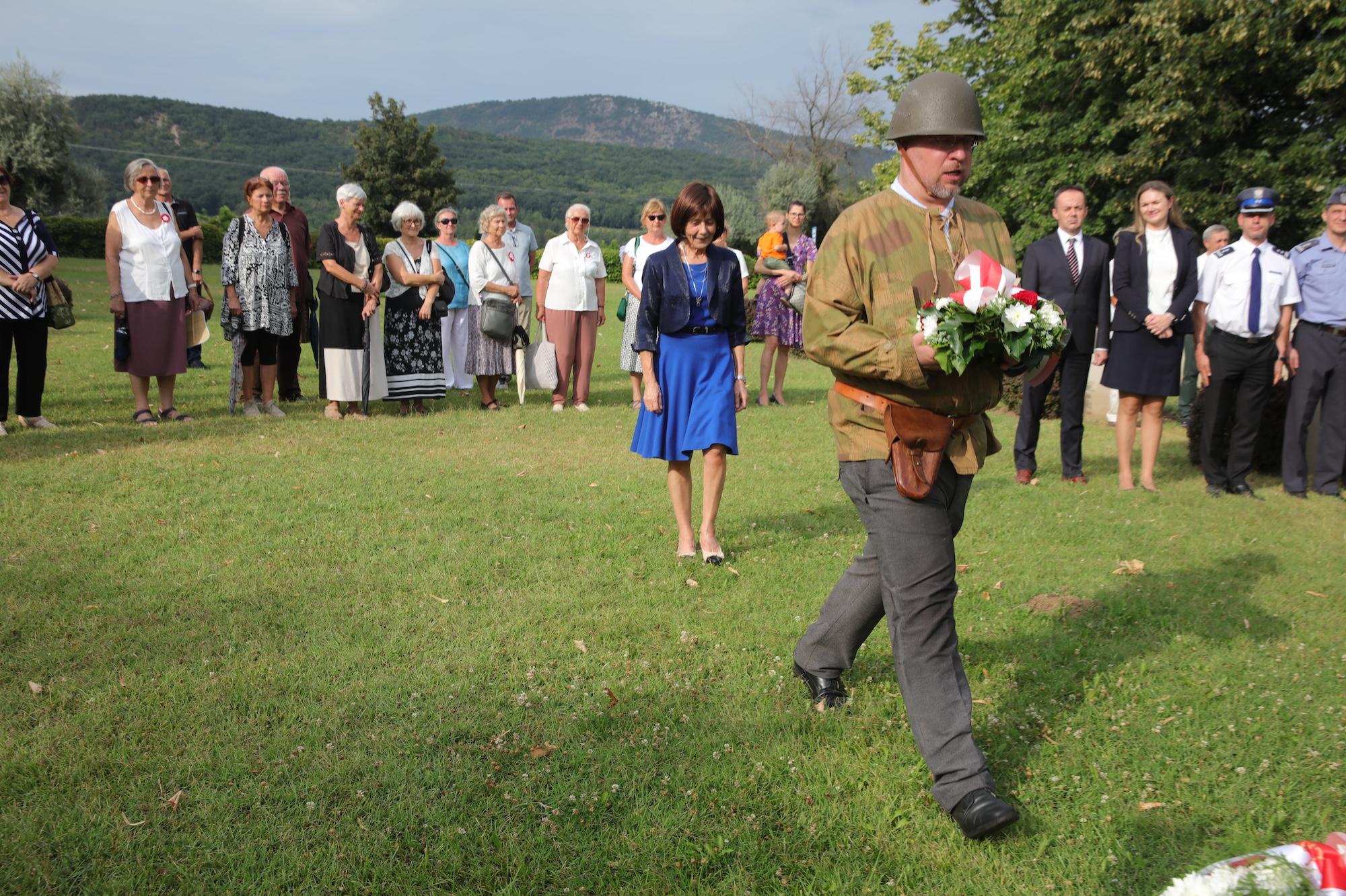 Przy krzyżu pamięci w centralnej części cmentarza wiązankę biało-czerwonych kwiatów złożył ambasador RP na Węgrzech Sebastian Kęciek, któremu towarzyszyli konsul RP Andrzej Kalinowski, dyrektor Instytutu Polskiego w Budapeszcie Dominika Teske oraz oficer łącznikowy polskiej policji mł. inspektor Bogusław Kołdys. Hołd poległym oddali attaché obrony płk Sławomir Mnitowski wraz z polskimi oficerami stacjonującymi na Węgrzech. W imieniu środowiska polskiego i polonijnego kwiaty złożyli m.in. rzecznik narodowości polskiej przy Zgromadzeniu Krajowym (parlamencie) Węgier Ewa Słaba Rónayné, prezes współorganizatora wydarzenia – Polskiego Stowarzyszenia Kulturalnego im. Józefa Bema na Węgrzech Mária Dávid, a także przedstawiciele samorządów i organizacji polonijnych.