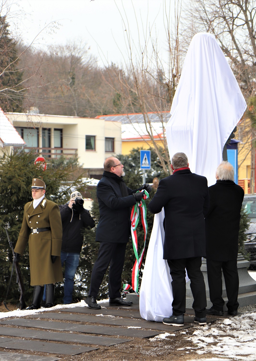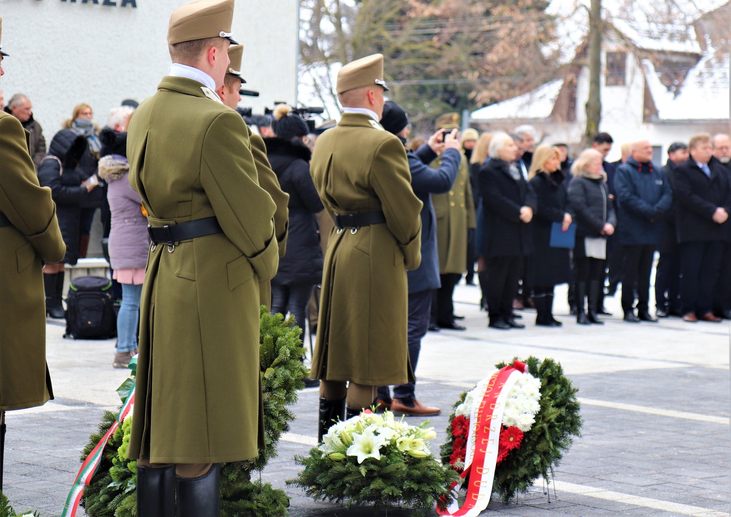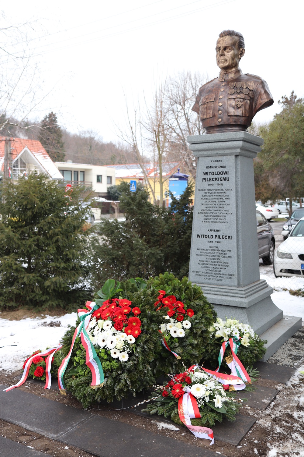 Po uroczystym odsłonięciu i poświęceniu pomnika w asyście żołnierzy węgierskiego i polskiego wojska wieńce złożyli ze strony władz polskich i polonijnych: ambasador Jerzy Snopek (w imieniu Prezydenta RP Andrzeja Dudy), dyrektor Biura Upamiętniania Walki i Męczeństwa IPN Adam Siwek, delegacja Ambasady RP z ambasadorem Jerzy Snopkiem na czele, przewodnicząca Ogólnokrajowego Samorządu Polskiego na Węgrzech Maria Felföldi i szefowa Stowarzyszenia Katolików Polskich na Węgrzech pod wezwaniem św. Wojciecha Monika Molnár oraz przewodnicząca Samorządu Narodowości Polskiej w III dzielnicy Budapesztu Korinna Wesołowski.