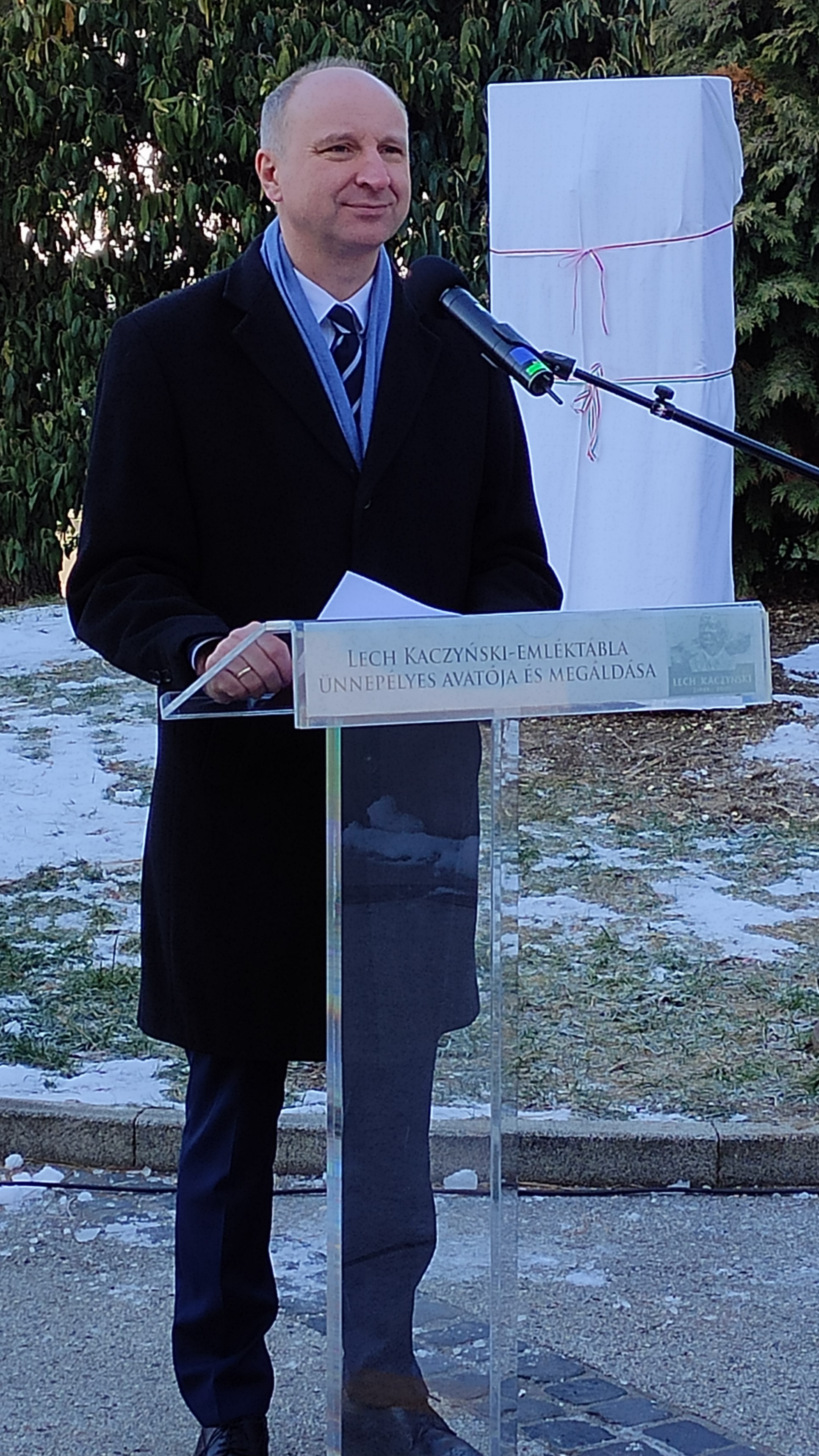 Odsłonięcie tablicy pamiątkowej poświęconej Lechowi Kaczyńskiemu w Veszprém