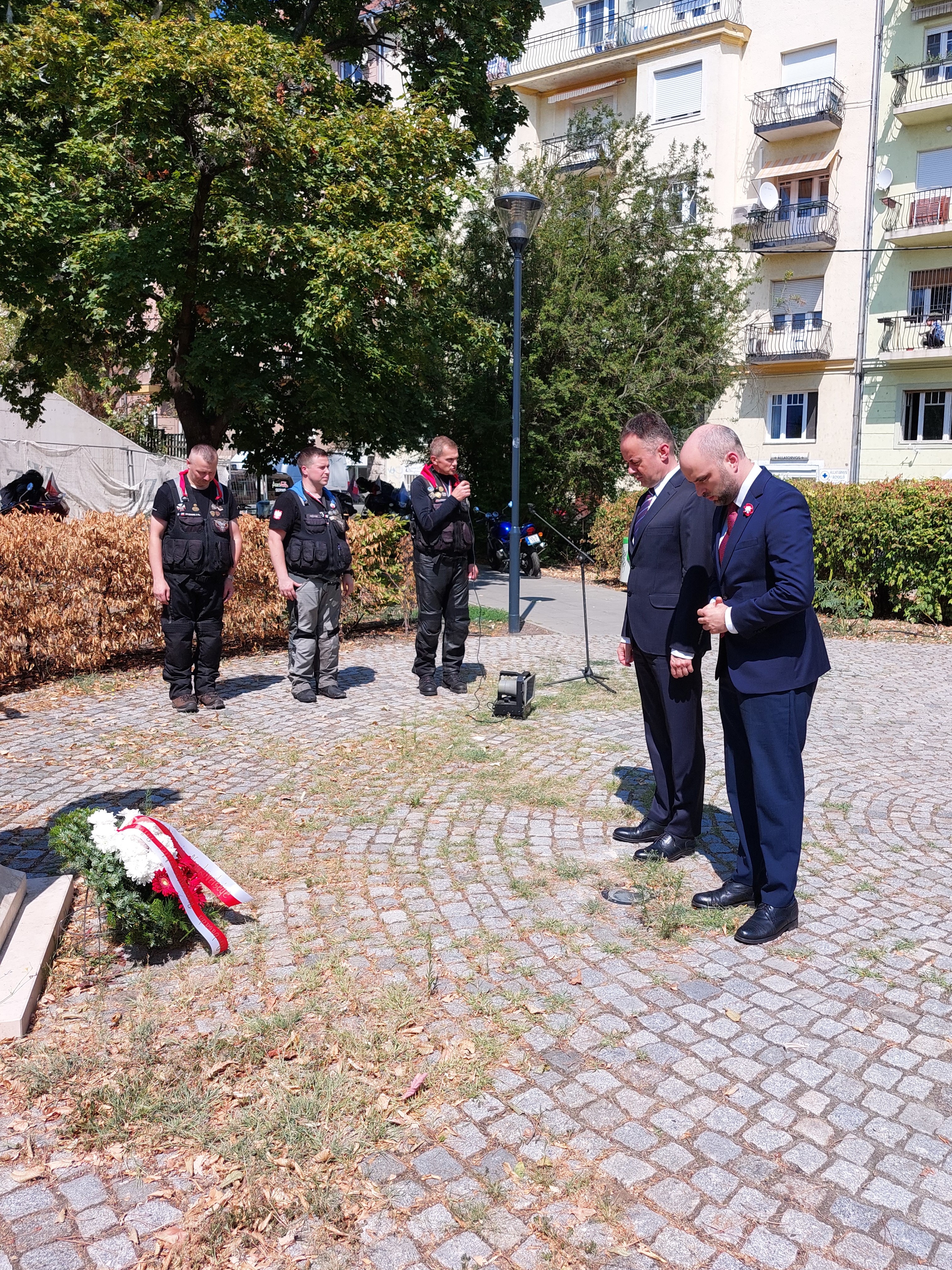 Wspominając Cud nad Wisłą – zwycięstwo Wojska Polskiego odradzającej się Rzeczypospolitej nad bolszewicką nawałą - ambasador RP na Węgrzech Sebastian Kęciek i konsul RP w Budapeszcie Andrzej Kalinowski złożyli 15 sierpnia 2022 roku wiązankę kwiatów w barwach narodowych przy budapesztańskim pomniku marszałka Józefa Piłsudskiego, naczelnego wodza polskiego wojska z okresu wojny polsko-bolszewickiej.