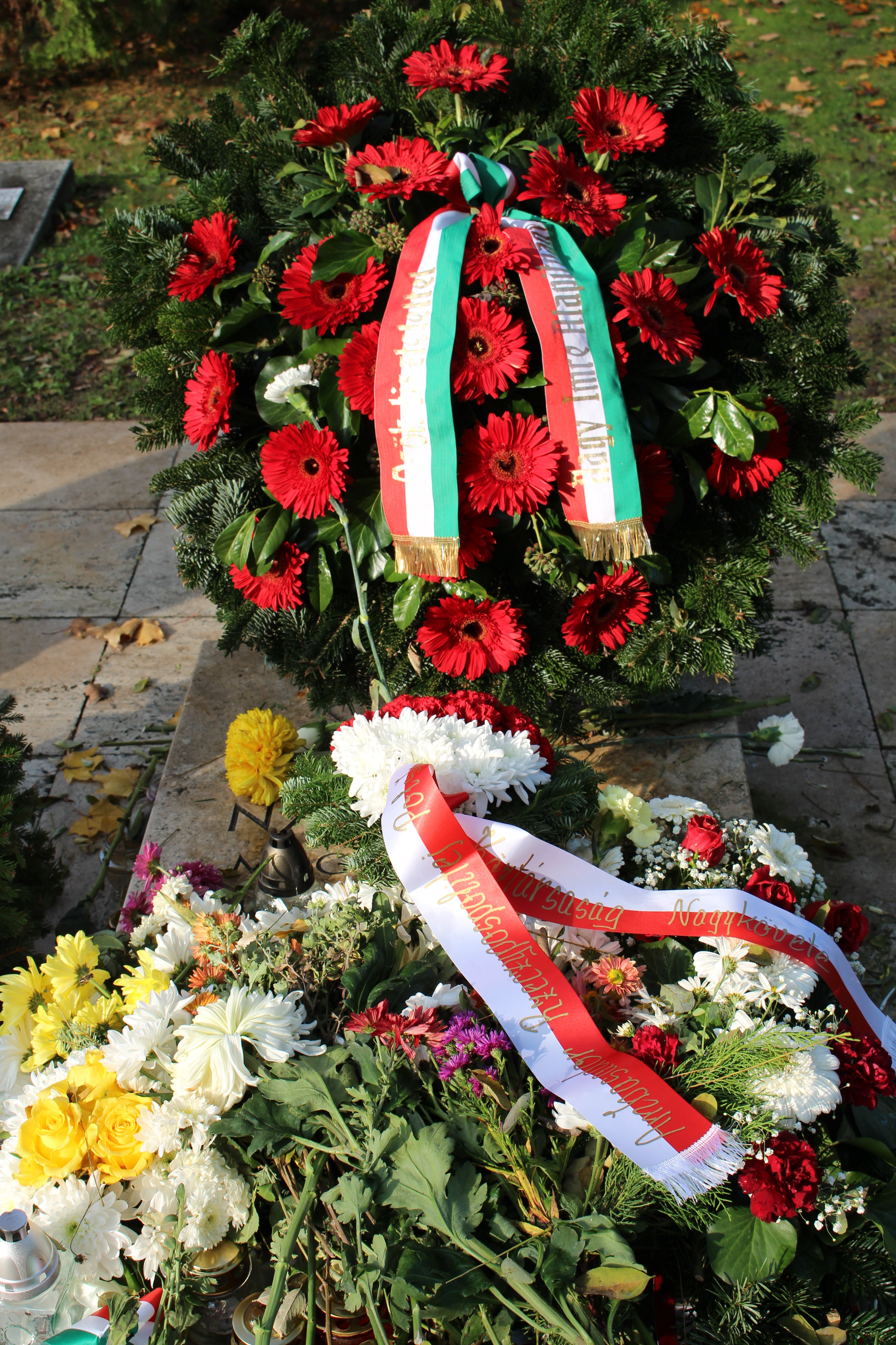 Wieńce na cmentarzu w Rákoskeresztúr