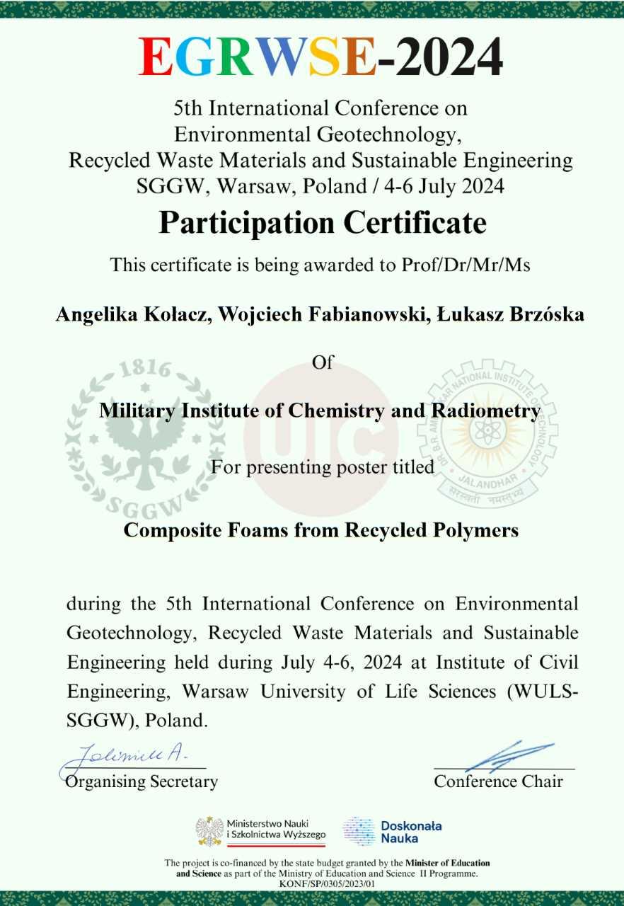 Konferencję uświetnili wybitni uczeni z dziedzin inżynierii zrównoważonej i geotechniki środowiskowej, a naukowcy WIChiR mieli możliwość wygłoszenia krótkiej prezentacji na temat Composite Foams from Recycled Polymers. Wystąpienie, które dotyczyło badań opracowania pianek kompozytowych z materiałów poliuretanowych pochodzących z recyklingu o ulepszonych właściwościach mechanicznych dzięki innowacyjnym technikom łączenia i przetwarzania, spotkało się z dużym zainteresowaniem przedstawicieli przemysłu i nauki.