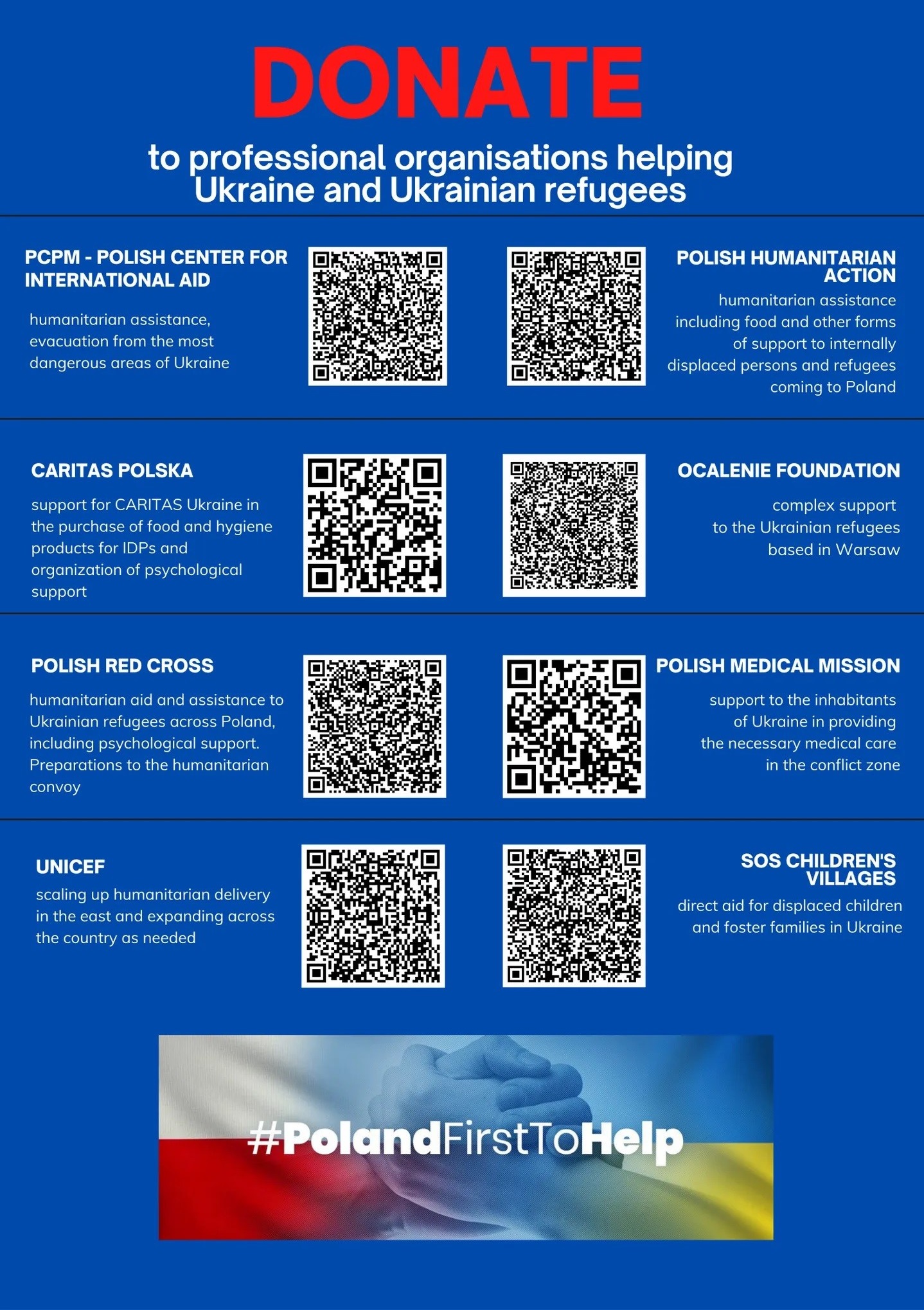 Obecnie na terytorium RP udzielana jest pomoc humanitarna w ramach rządowego mechanizmu koordynacji: www.pomagamukrainie.gov.pl.