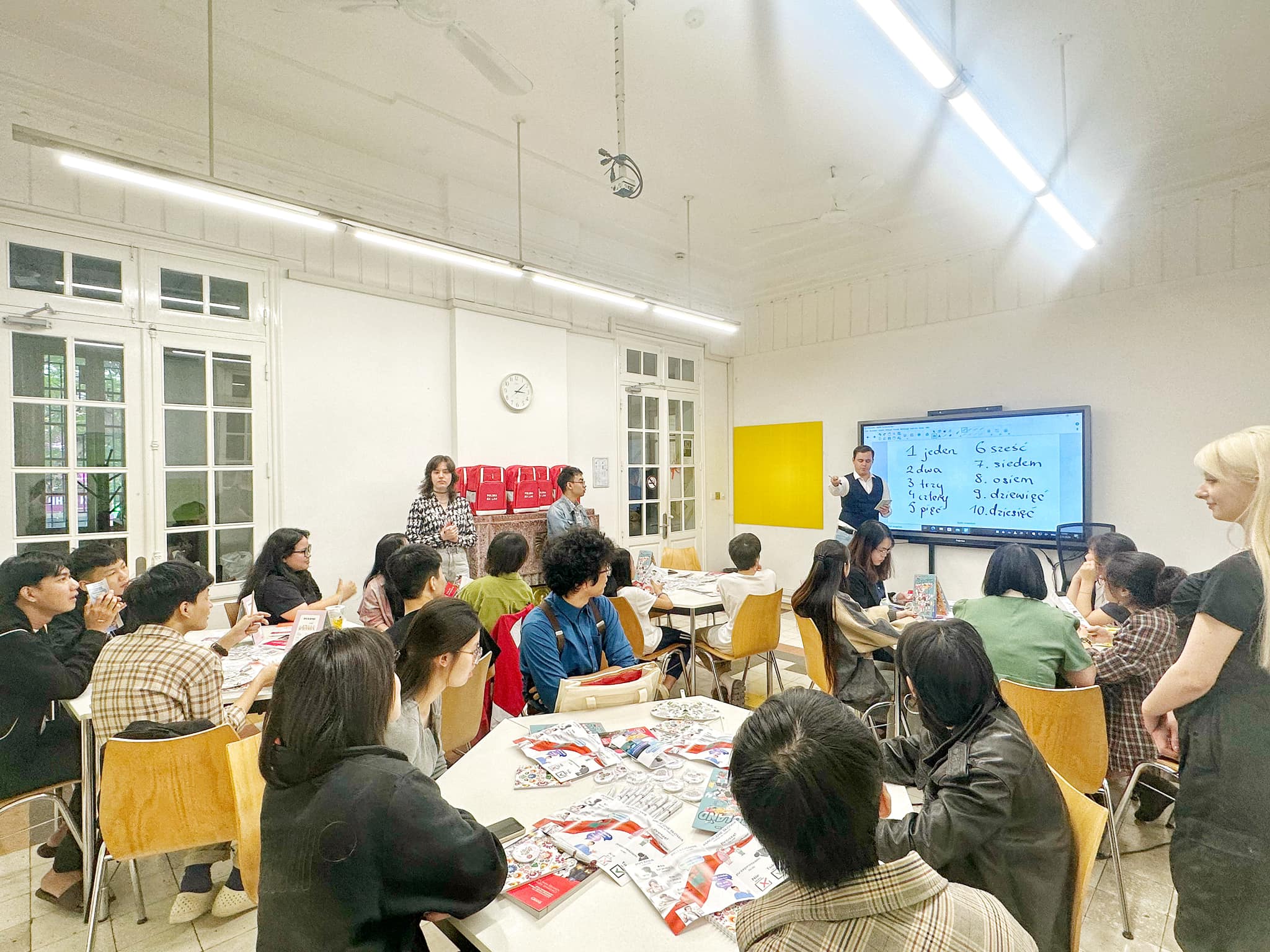 Polskie kąciki przyciągnęły uwagę setek uczestników, którzy mieli okazję wziąć udział w trzech lekcjach języka polskiego prowadzonych przez lektora z Narodowej Agencji Wymiany Akademickiej (NAWA). W ramach sesji „speak-dating”, uczestnicy mogli nauczyć się podstawowych zwrotów i słów w języku polskim. Dodatkowo, mieli możliwość porozmawiać z polskimi studentami oraz wietnamskimi absolwentami polskich uczelni, którzy dzielili się swoimi doświadczeniami związanymi z nauką języka polskiego oraz studiami w Polsce.