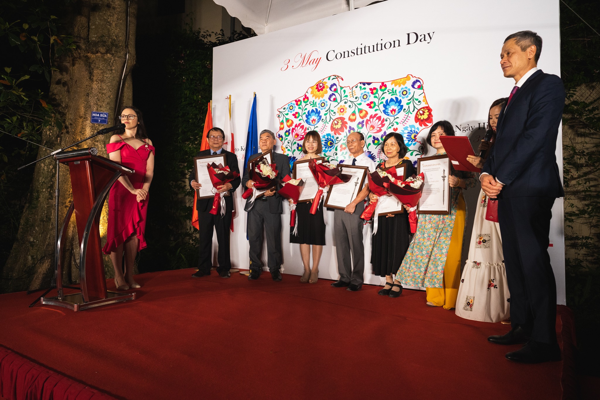 Podczas uroczystości Pani Justyna Pabian, Chargé d'affaires a.i. Rzeczypospolitej Polskiej w Wietnamie miał zaszczyt wręczyć dyplomy uznania wietnamskim tłumaczom literatury polskiej. Wyróżnieni odegrali kluczową rolę w umacnianiu silnych więzi między naszymi narodami poprzez tłumaczenie polskich książek dla wietnamskich czytelników. Jeszcze raz składamy im najserdeczniejsze gratulacje i wyrażamy wdzięczność za ich nieoceniony wkład.