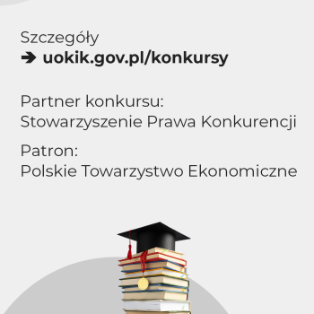 Przypominamy o trwającym konkursie Prezesa UOKiK na najlepszą rozprawę doktorską poświęconą ochronie konkurencji i konsumentów. Nagroda główna to 10 tys. zł. Na zgłoszenia czekamy do 30 listopada 2027 r. Więcej informacji na stronie UOKiK.