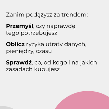- Czy to warte swojej ceny i ryzyka? Jakie siły marketingowe tworzą trendy, jak się przed nimi bronić – podpowiadamy na grafikach.