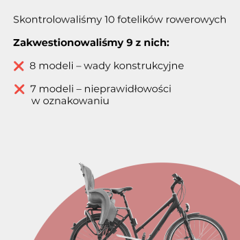 - Skontrolowaliśmy 10 modeli fotelików rowerowych. Prawie wszystkie miały wady konstrukcji lub nieprawidłowe oznakowanie.