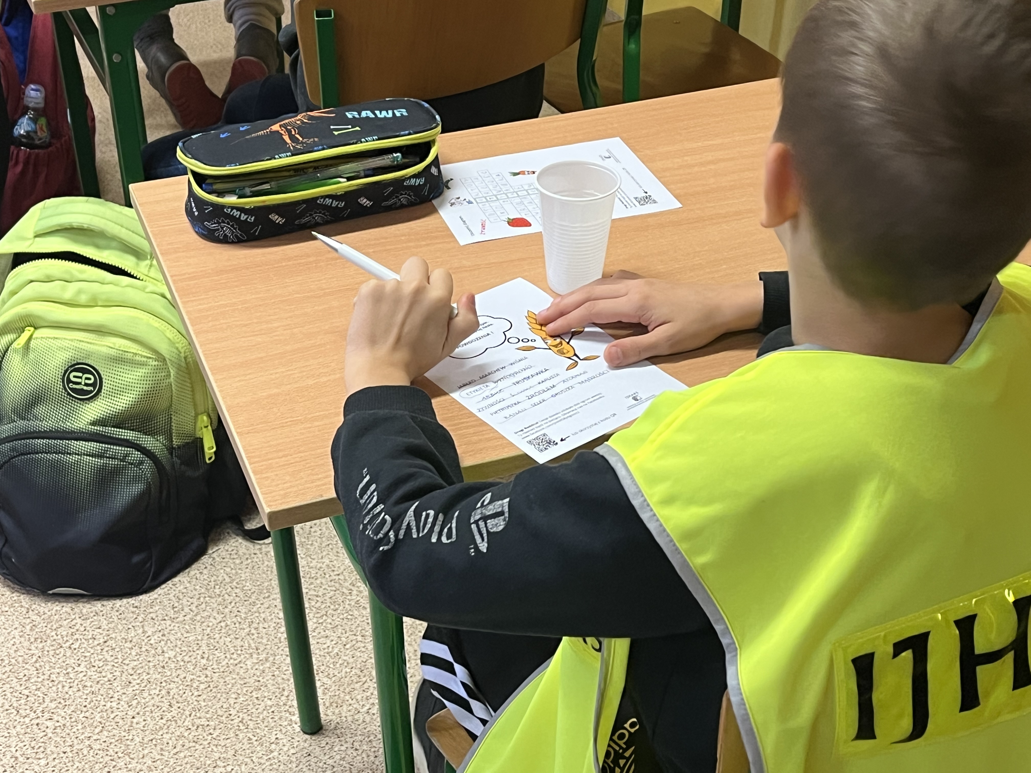 Równie ważna, co merytoryka okazała się dobra zabawa. Dzieci miały okazję ubrać kamizelki odblaskowe, które towarzyszą inspektorom podczas kontroli i z lupą w dłoni analizować etykiety.