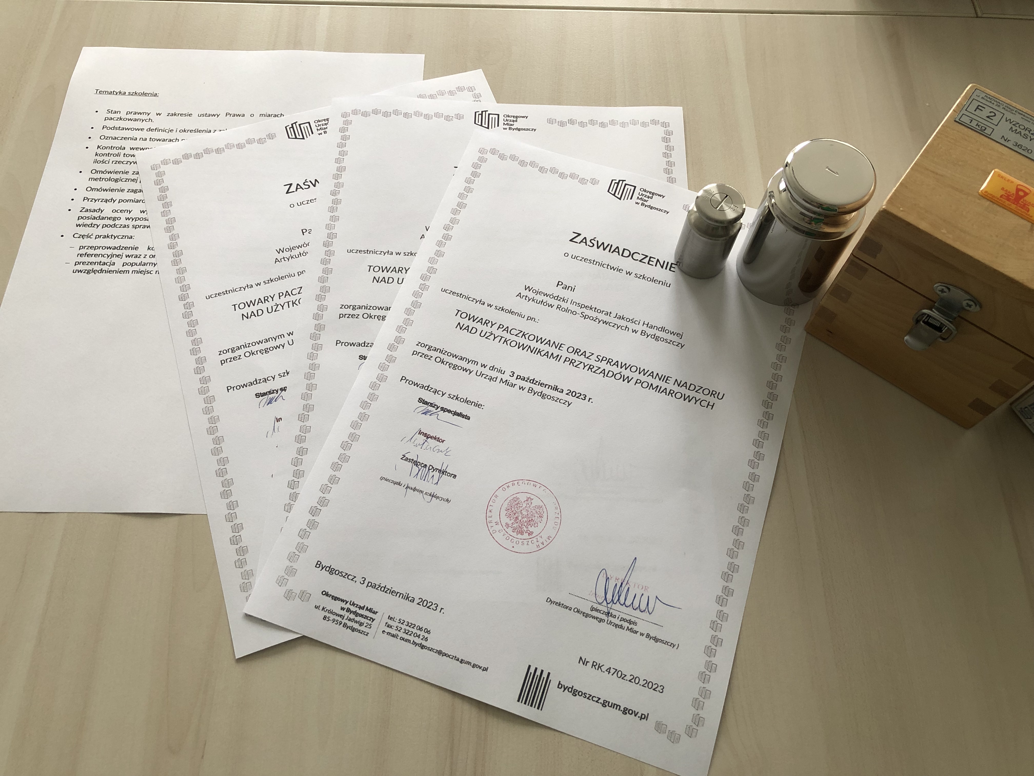 Dnia 03 października 2023 r. pracownicy WIJHARS w Bydgoszczy uczestniczyli w kolejnym już szkoleniu pn. "Towary paczkowane oraz sprawowanie nadzoru nad użytkownikami przyrządów pomiarowych". Szkolenie zorganizowane zostało przez Okręgowy Urząd Miar w Bydgoszczy a jego cykliczność jest wynikiem podpisanego porozumienia, zawartego między instytucjami. Szkolenie składało się z części teoretycznej oraz praktycznej, a jego celem była wzajemna wymiana fachowej i praktycznej wiedzy, która przyczyni się do zwiększenia skuteczności sprawowania nadzoru nad wykonywaniem przepisów ustawy z dnia 11 maja 2001 r. Prawo o miarach oraz ustawy z dnia 7 maja 2009 r. o towarach paczkowanych.