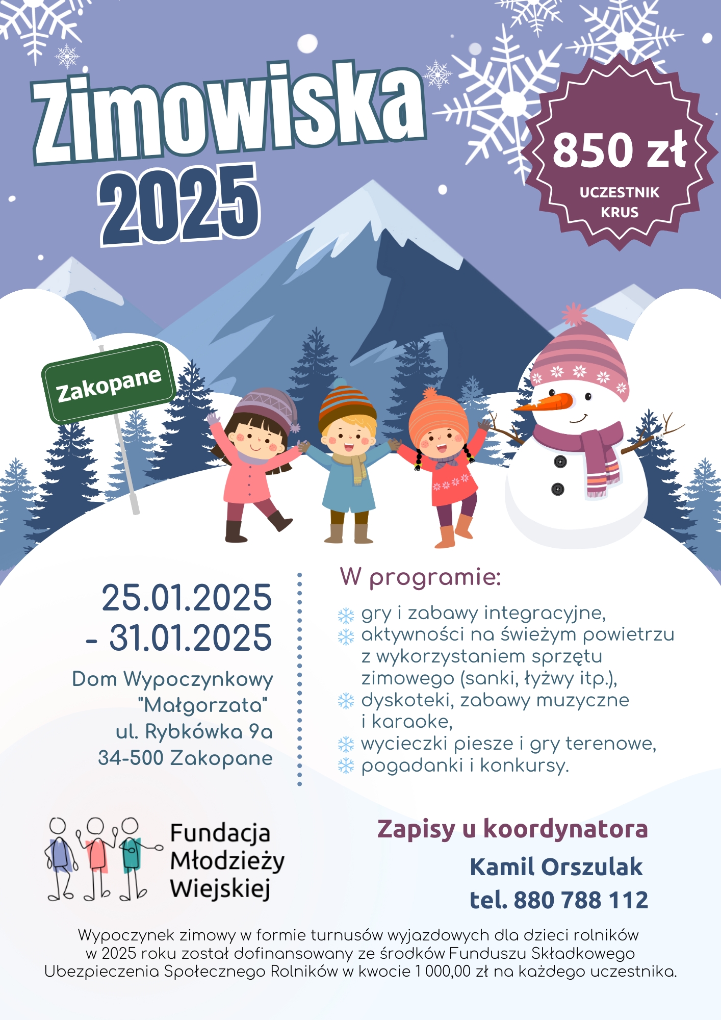 Szukasz pomysłu na niezapomniane ferie zimowe dla swojego dziecka? Związek Młodzieży Wiejskiej zaprasza na ferie z dofinasowaniem Funduszu Składkowego Ubezpieczenia Społecznego Rolników!
