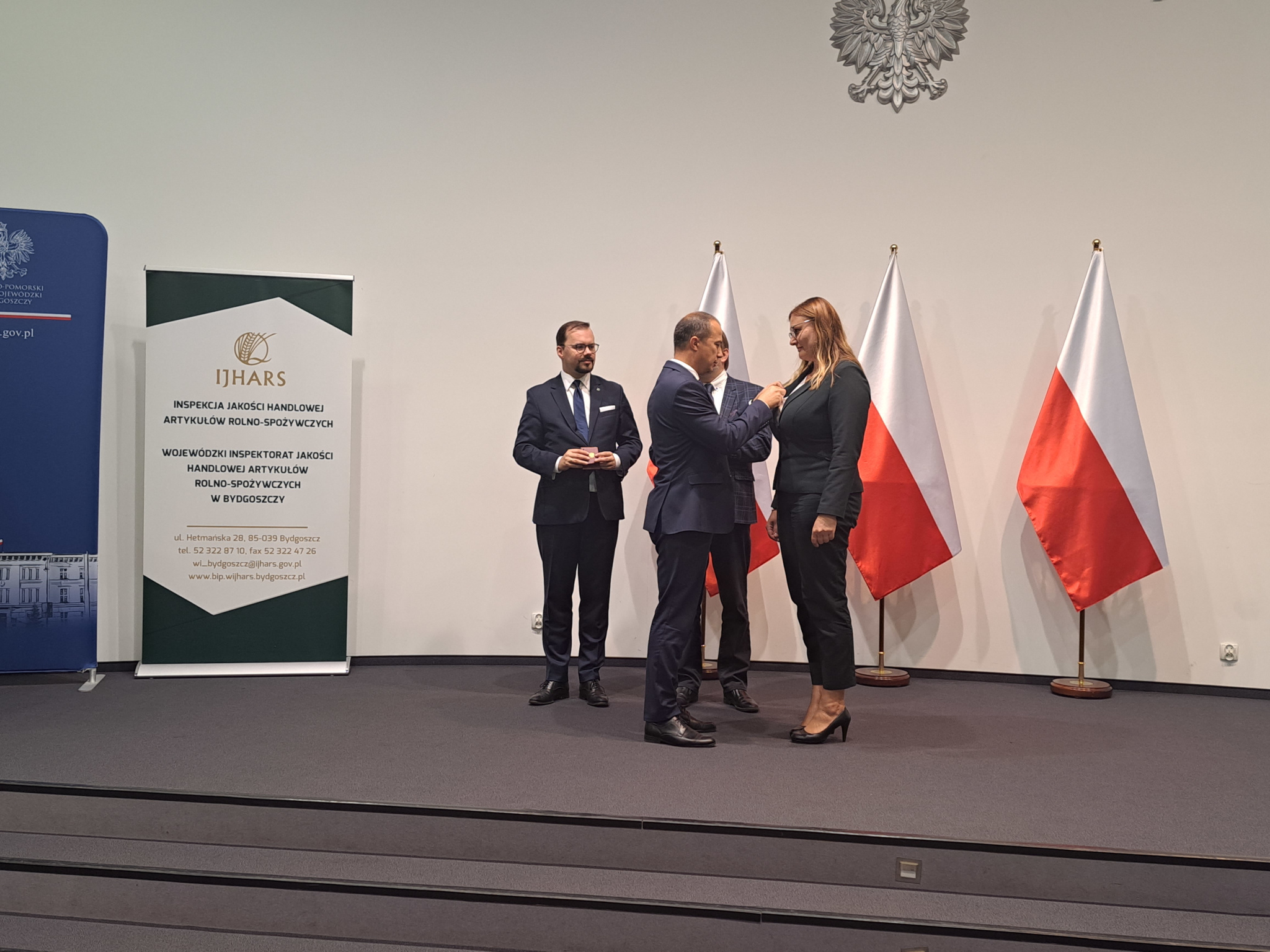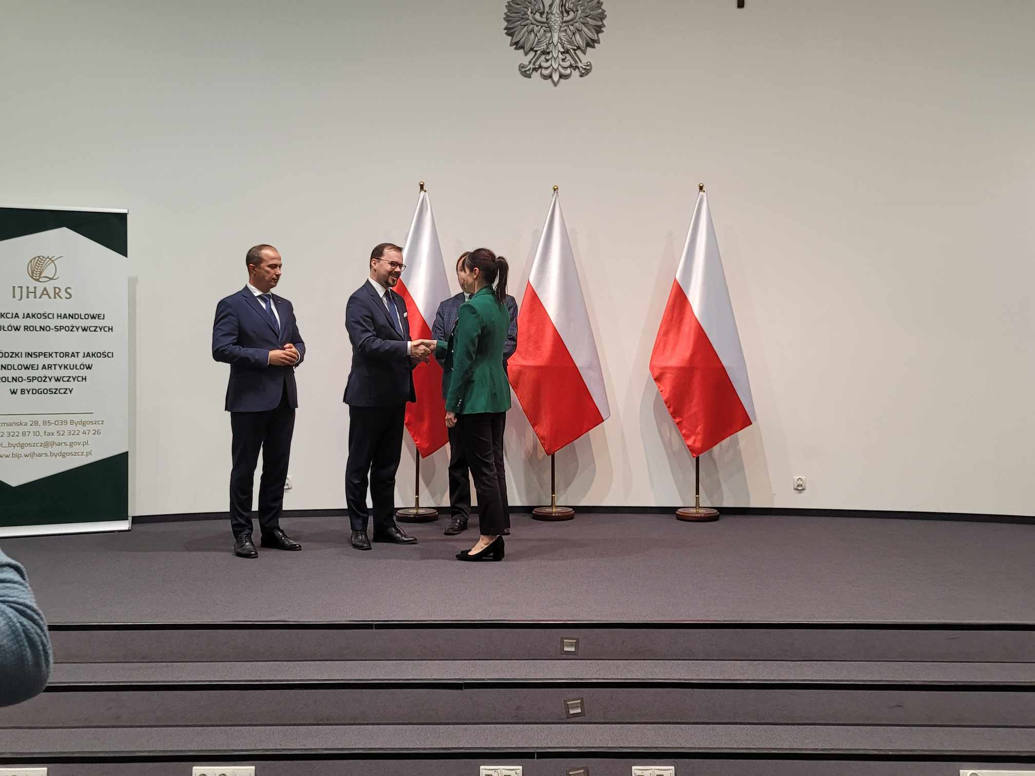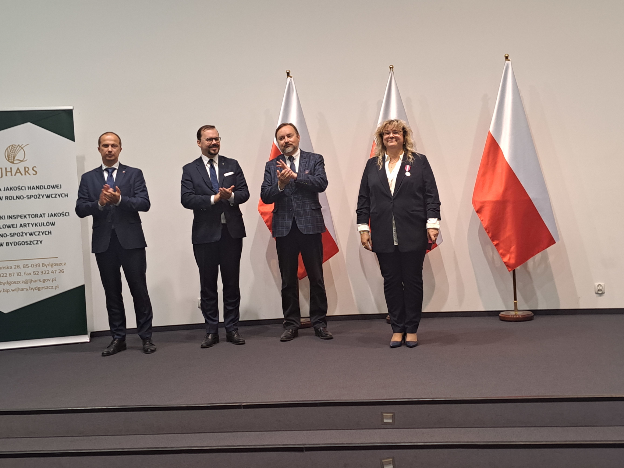 W dniu 21.09.2023 r. w ramach obchodów jubileuszu 20-lecia Inspekcji Jakości Handlowej Artykułów Rolno – Spożywczych w siedzibie Kujawsko – Pomorskiego Urzędu Wojewódzkiego w Bydgoszczy odbyła się uroczysta konferencja pt. „Liczy się jakość” podczas, której m.in. wręczono zasłużonym pracownikom IJHARS z województw: kujawsko – pomorskiego, warmińsko – mazurskiego i pomorskiego odznaczenia państwowe „Medal za długoletnią służbę” przyznane przez Prezydenta Rzeczpospolitej Polskiej oraz odznaki honorowe „Zasłużony dla rolnictwa” przyznane przez Ministra Rolnictwa i Rozwoju Wsi.