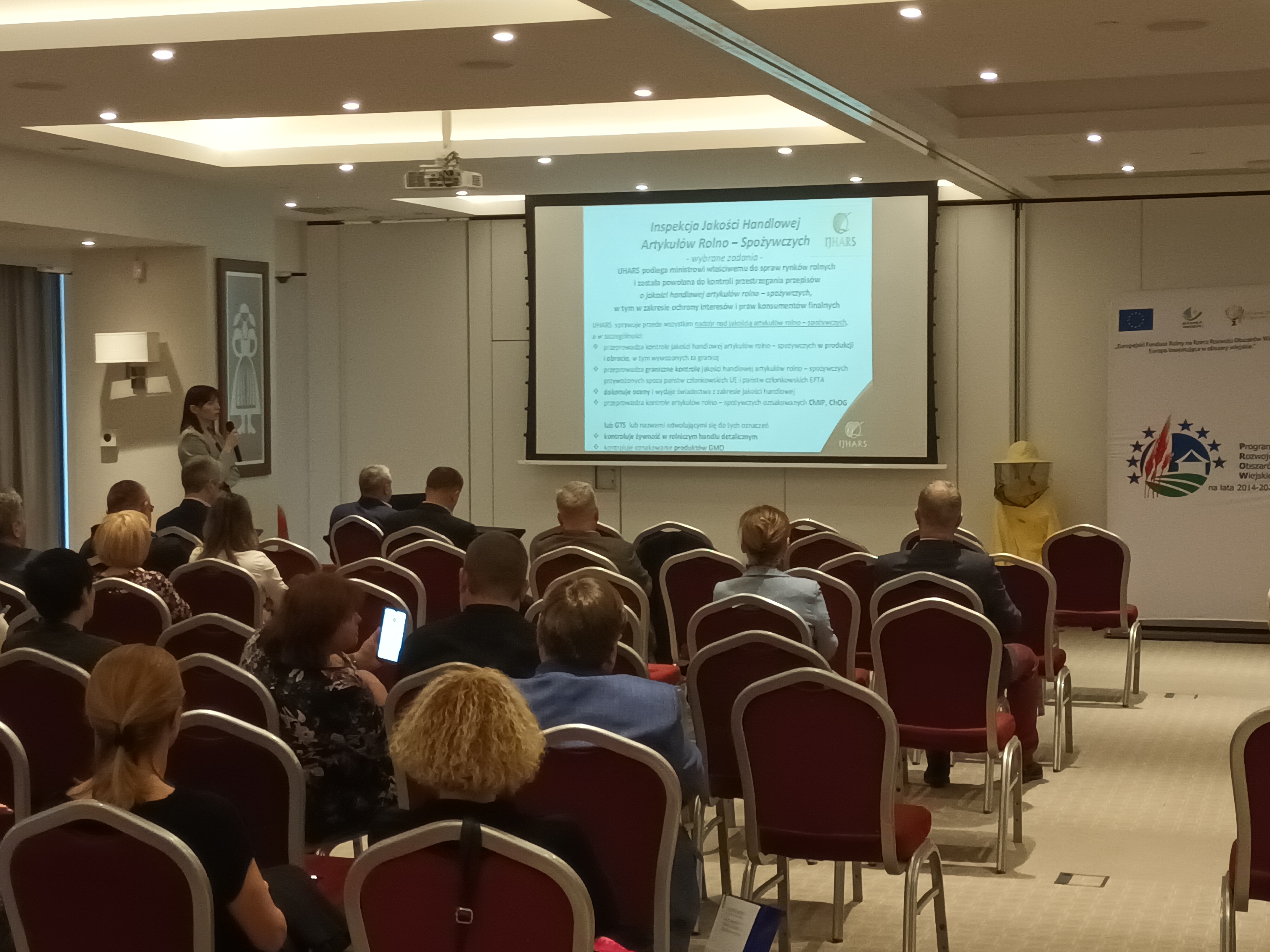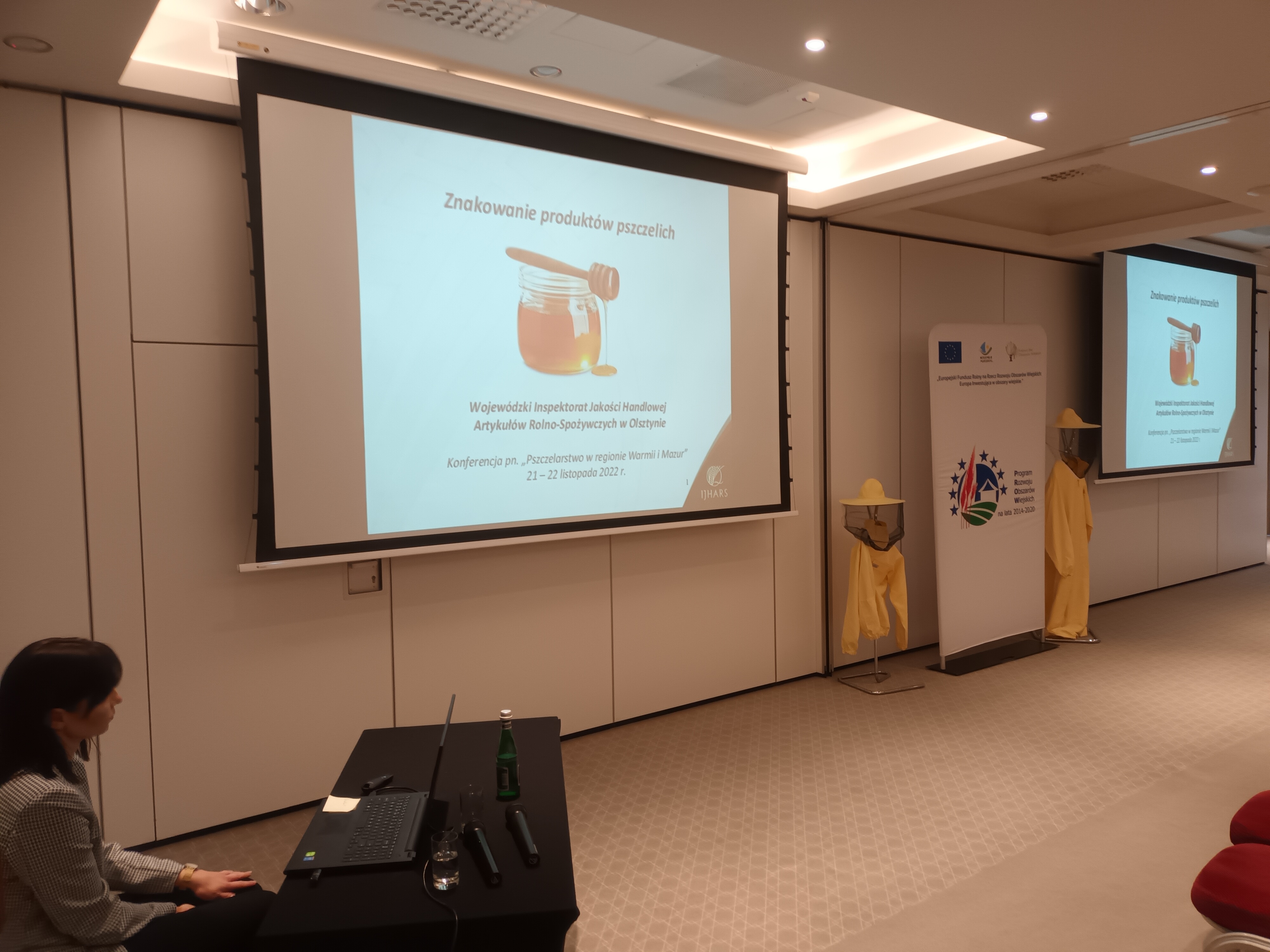 W dniach 21 – 22.11.2022 r. w Warchałach odbyła się konferencja zorganizowana przez Samorząd Województwa Warmińsko – Mazurskiego pt. „Pszczelarstwo w regionie Warmii i Mazur”. Konferencja skierowana była do samorządów, gospodarzy miast i gmin, do pszczelarzy indywidualnych jak również zrzeszonych w branżowych związkach pszczelarzy oraz do innych instytucji działających w sektorze rolnictwa i obszarów wiejskich. Celem konferencji było zwrócenie powszechnej uwagi na zagadnienia związane z dobrostanem pszczół, ich rolą w ekosystemie, wpływie na rolnictwo i życie konsumenta. Do udziału w spotkaniu obok autorytetów z dziedziny pszczelarstwa zaproszono również Warmińsko – Mazurskiego Wojewódzkiego Inspektora Jakości Handlowej Artykułów Rolno – Spożywczych. Podczas konferencji pracownik WIJHARS w Olsztynie - Pani Małgorzata Staniszewska – Główny Specjalista w Wydziale Kontroli wygłosiła prelekcję pt. „Znakowanie produktów pszczelich”, w ramach której omówiono regulacje prawne dotyczące oznakowania wprowadzanych do obrotu produktów pszczelich, ze szczególnym uwzględnieniem miodów, wynikające zarówno z prawa europejskiego jak i krajowego.