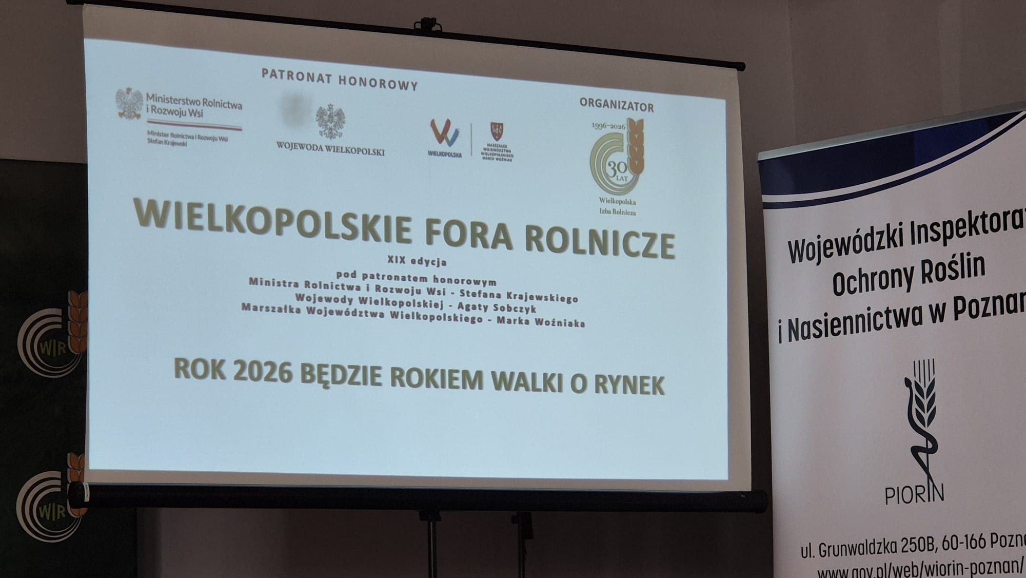 W dniu 5 marca 2026 r. Pani Maria Jaśkiewicz Wielkopolski Wojewódzki Inspektor Jakości Handlowej Artykułów Rolno-Spożywczych uczestniczyła w Forum Rolniczym Powiatu Jarocińskiego, zorganizowanym w Woli Książęcej, gmina Kotlin. Było to ostatnie spotkanie zorganizowane przez Wielkopolską Izbę Rolniczą w ramach XIX edycji Wielkopolskich Forów Rolniczych. Patronat nad tegorocznym cyklem spotkań objęli: Stefan Krajewski – Minister Rolnictwa i Rozwoju Wsi, Agata Sobczyk – Wojewoda Wielkopolska oraz Marek Woźniak – Marszałek Województwa Wielkopolskiego.