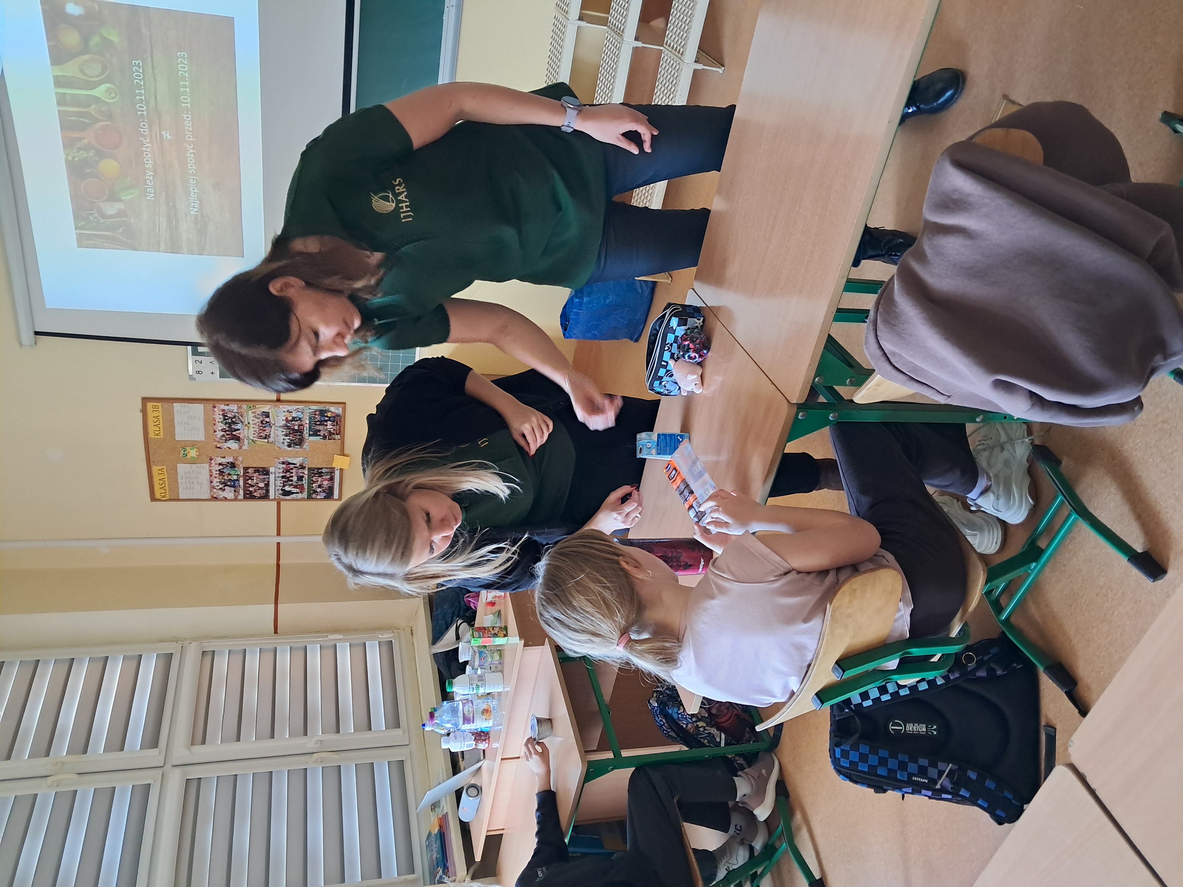 Nie zabrakło rozmów, ciekawostek oraz wspólnej analizy przykładowych produktów. Dzięki temu uczniowie mogli samodzielnie sprawdzić, jak odczytywać informacje zawarte na etykietach i na co zwracać uwagę podczas zakupów.