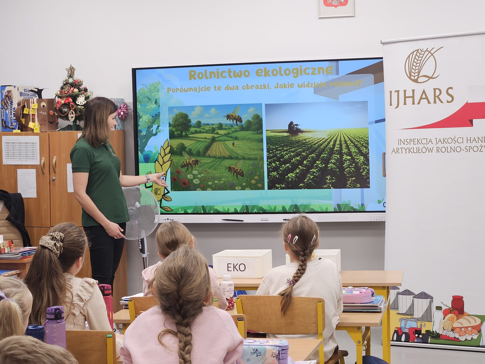 Podczas zajęć uczniowie zostali wprowadzeni w podstawowe pojęcia dotyczące rolnictwa i produkcji żywności. Omówiono najważniejsze zagadnienia związane z rolnictwem ekologicznym, ze szczególnym uwzględnieniem różnic pomiędzy produkcją ekologiczną a nieekologiczną. Dzieci dowiedziały się, w jaki sposób powstają produkty ekologiczne oraz dlaczego ich wybór ma znaczenie dla zdrowia człowieka i środowiska naturalnego.