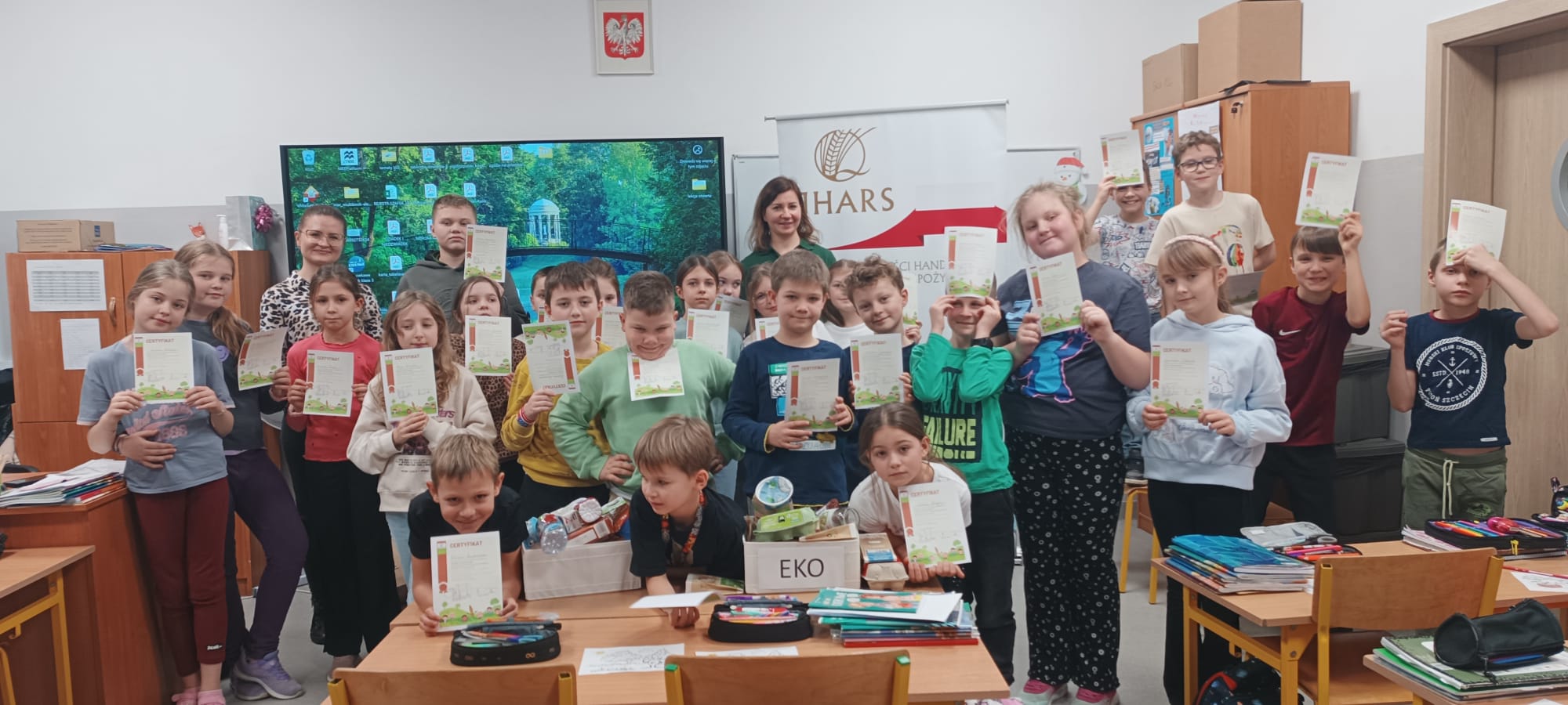 Głównym celem lekcji było przybliżenie dzieciom zasad produkcji ekologicznej, pokazanie różnic między produktami eko a konwencjonalnymi oraz uświadomienie, jak nasze codzienne decyzje – zwłaszcza te dotyczące jedzenia – mogą wspierać ochronę środowiska. Uczniowie dowiedzieli się, czym charakteryzuje się rolnictwo ekologiczne, jakie metody stosują rolnicy eko oraz jakie certyfikaty świadczą o jakości i pochodzeniu produktów.