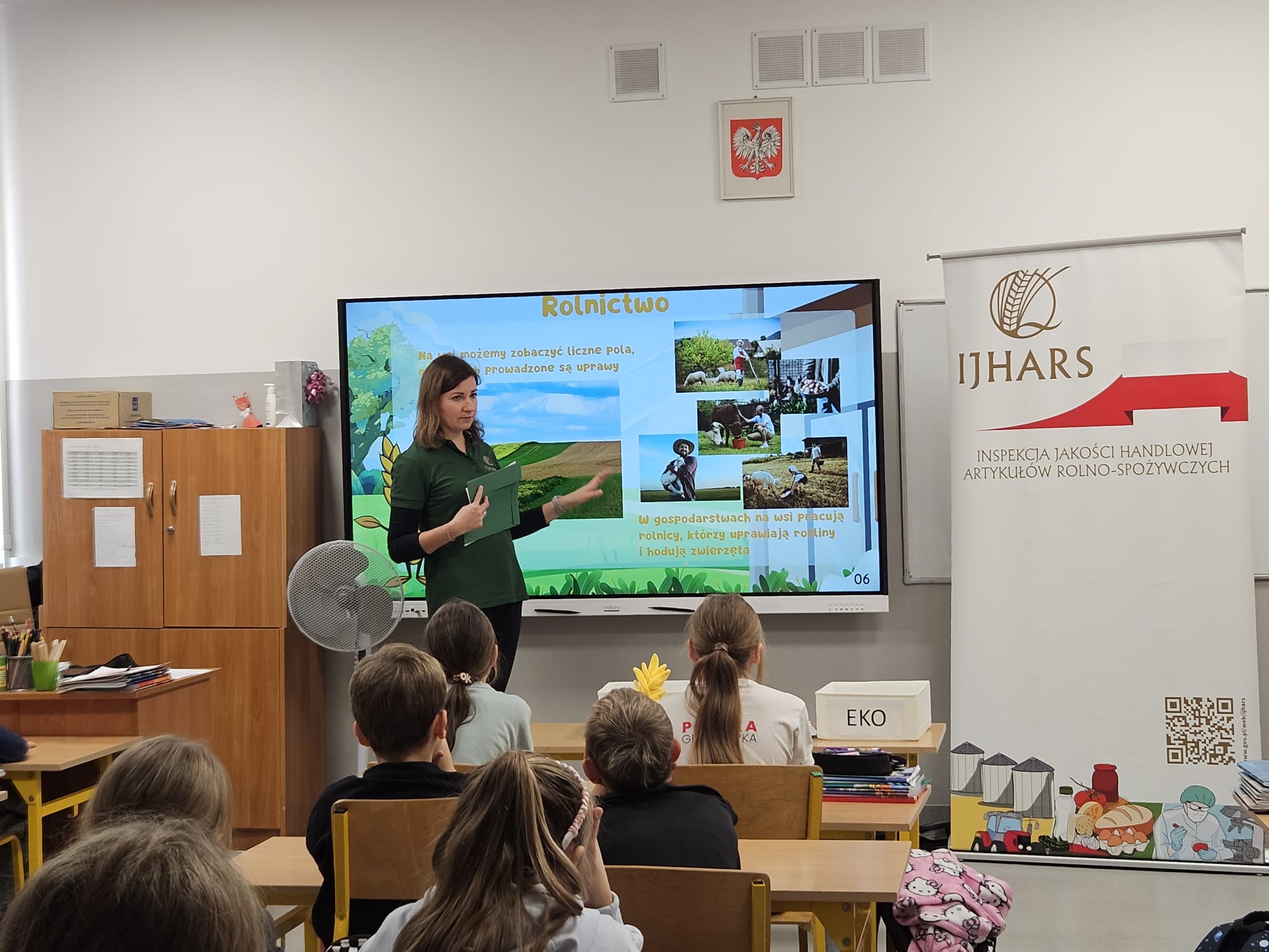26 listopada 2025 r. Inspektorki IJHARS odwiedziły Szkołę Podstawową nr 51 w Szczecinie przy ul. Jodłowej 21, aby poprowadzić wyjątkową lekcję dla uczniów klasy 3d. Tematem spotkania były podstawowe zagadnienia z zakresu rolnictwa ekologicznego oraz znaczenia codziennych wyborów dla środowiska.