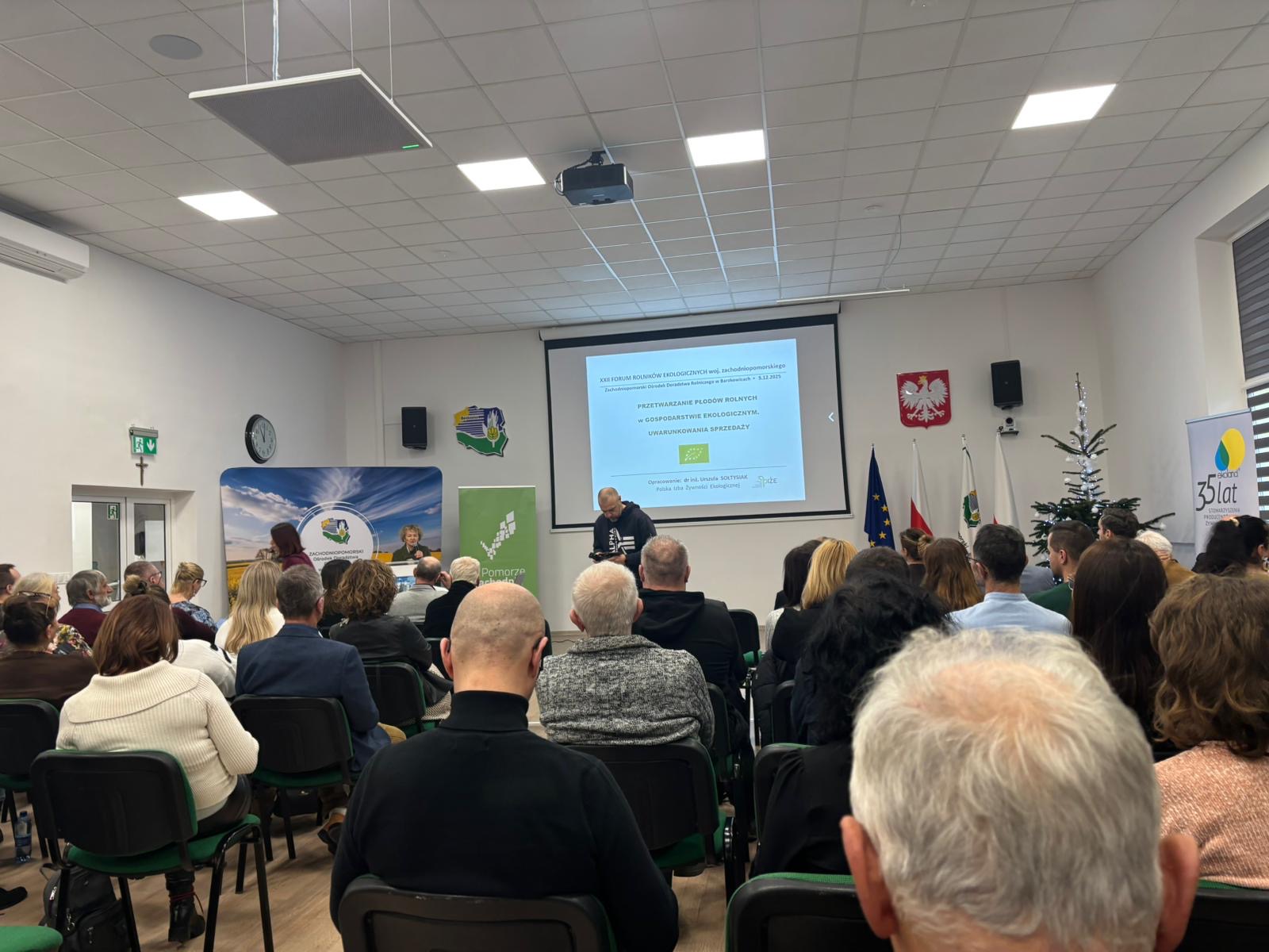 5 grudnia 2025 r. przedstawicielki Wojewódzkiego Inspektoratu Jakości Handlowej Artykułów Rolno-Spożywczych w Szczecinie uczestniczyły w XXII Forum Rolników Ekologicznych, zorganizowanym w Zachodniopomorskim Ośrodku Doradztwa Rolniczego w Barzkowicach. Wydarzenie to objęte było patronatem honorowym Ministra Rolnictwa i Rozwoju Wsi, Pana Stefana Krajewskiego, co podkreśla rangę i znaczenie forum dla rozwoju rolnictwa ekologicznego w regionie i w całej Polsce.