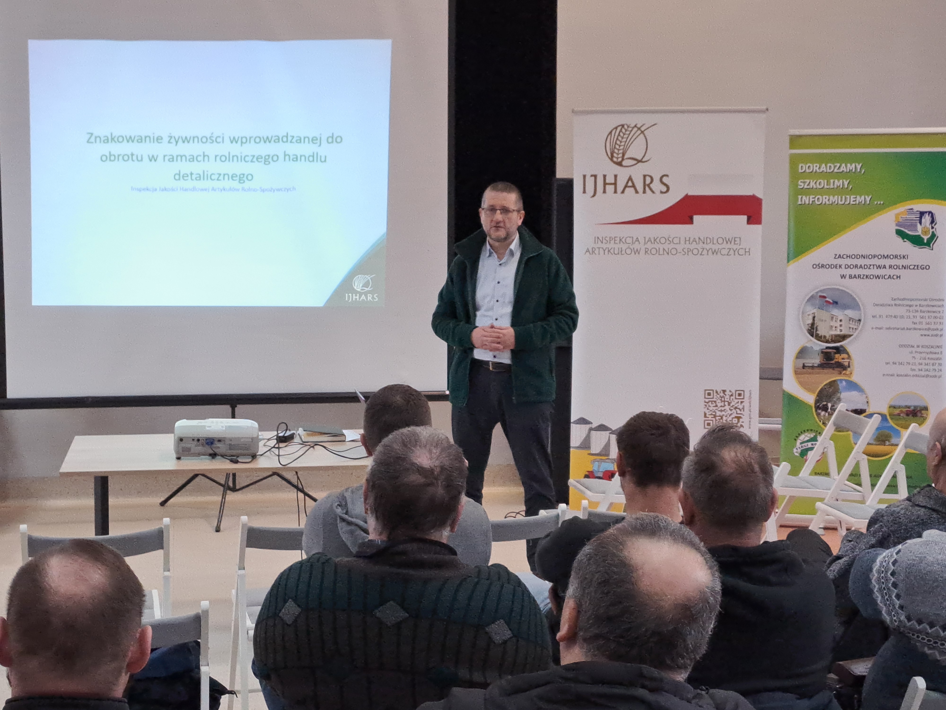 21 lutego 2025 roku przedstawiciele Wojewódzkiego Inspektoratu Jakości Handlowej Artykułów Rolno-Spożywczych w Szczecinie uczestniczyli w szkoleniu zorganizowanym przez Zachodniopomorski Ośrodek Doradztwa Rolniczego w Barzkowicach. Wydarzenie było dedykowane rolnikom z gminy Przelewice i dotyczyło zagadnień związanych z rolniczym handlem detalicznym.