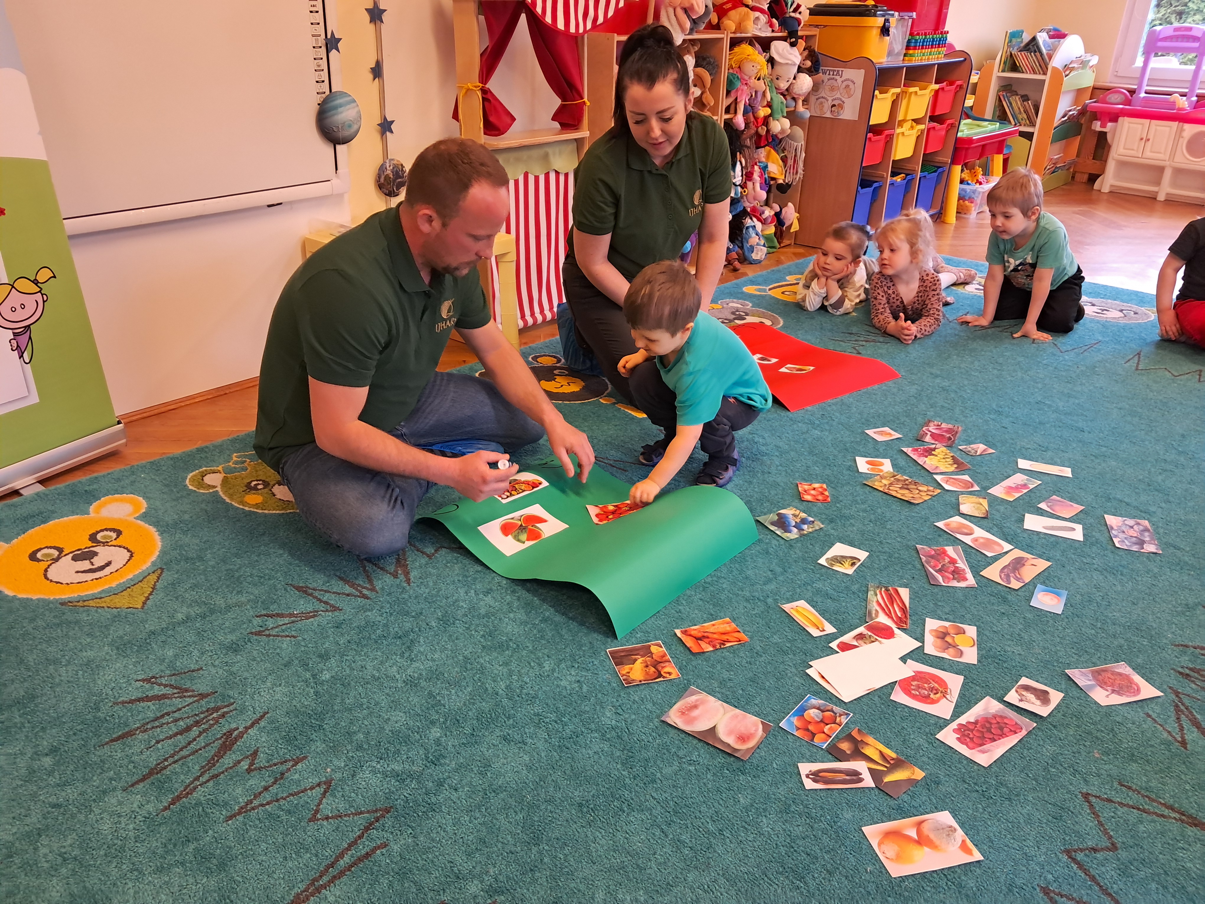 Podczas zajęć dzieci dowiedziały się, na czym polega praca inspektorów IJHARS oraz miały okazję poznać maskotkę tej instytucji. W trakcie pogadanki przedszkolaki chętnie dzieliły się swoją wiedzą na temat przyniesionych owoców i warzyw. Wspólnie omawiano ich nazwy, podział na owoce i warzywa, miejsce ich wzrostu, sposób spożywania (ze skórką czy bez) oraz charakterystyczne kolory.