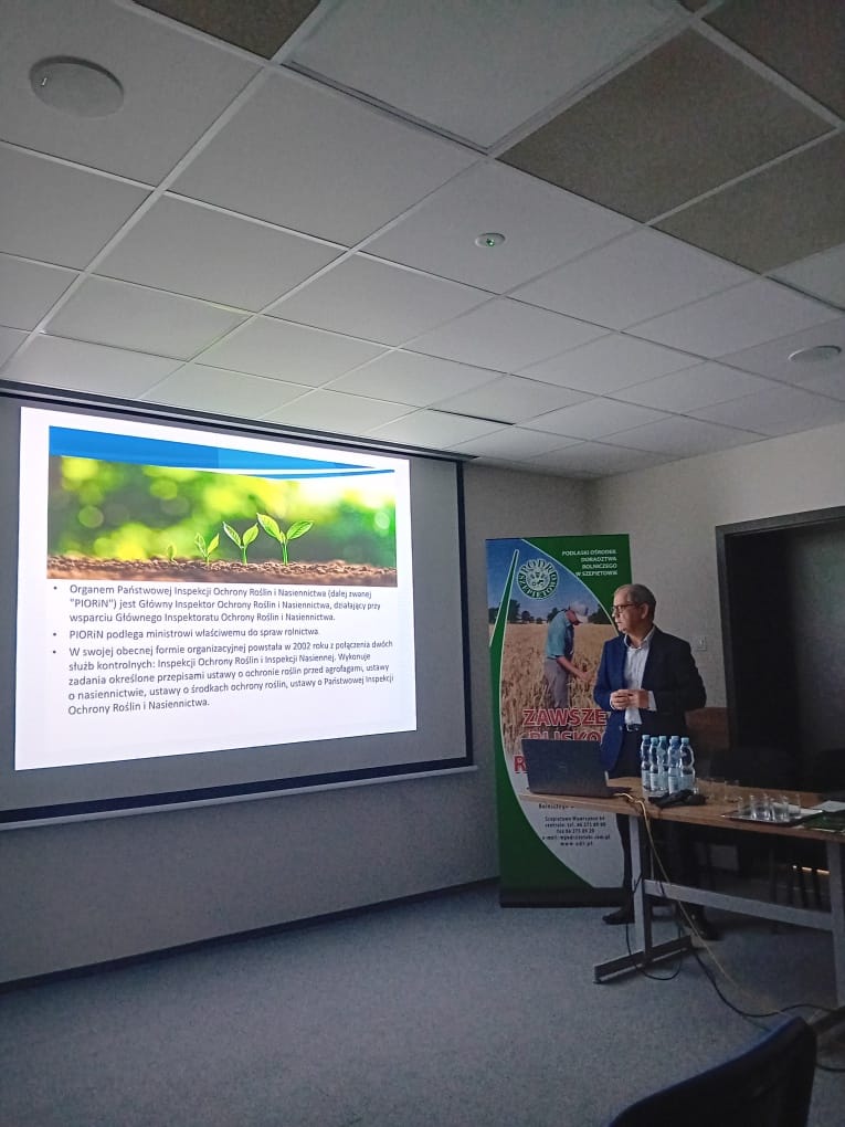 W dniu 10 grudnia 2024 r. pracownicy Działu Ochrony Roślin i Nawozów wraz z Podlaskim Wojewódzkim Inspektorem Ochrony Roślin i Nasiennictwa Panem Robertem Mroczko uczestniczyli w szkoleniu zorganizowanym przez Podlaski Ośrodek Doradztwa Rolniczego w Szepietowie dla swoich doradców terenowych z terenu województwa podlaskiego.