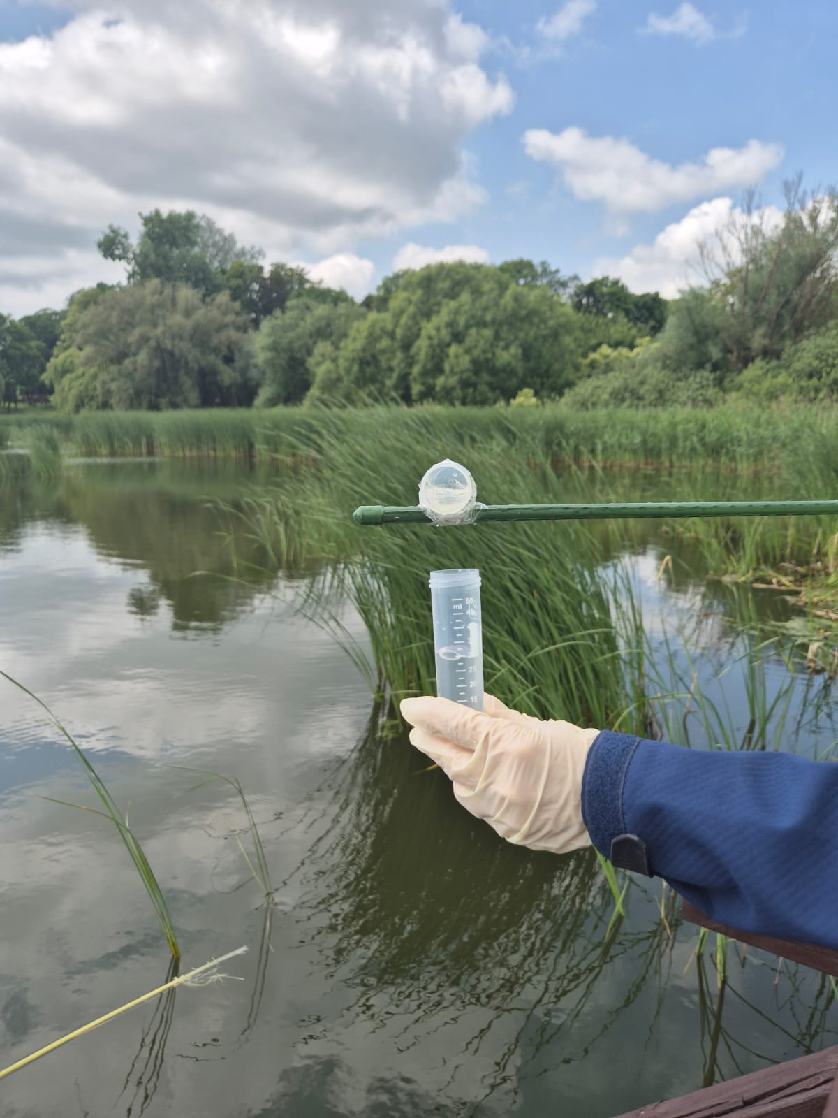 Wodę do badań pobiera się do sterylnych probówek w odległości 2 m od brzegu, na głębokości 30 cm, jeśli to możliwe, w jak najbliższej odległości od roślin psianki słodkogórz.