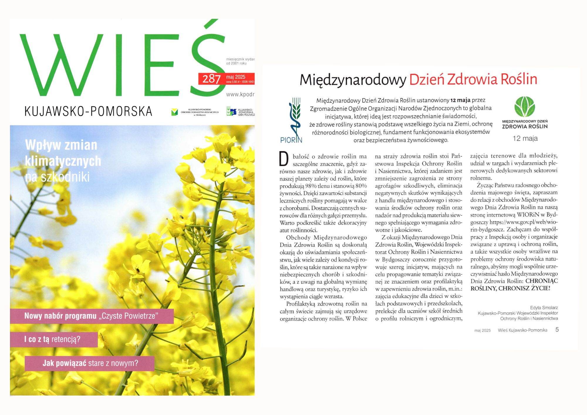 Aby zwiększyć zasięg działań informacyjnych, w miesięczniku „Wieś Kujawsko-Pomorska”, skierowanym do rolników, samorządów, firm obsługi rolnictwa oraz innych osób zainteresowanych sprawami wsi, opublikowano artykuł promujący Międzynarodowy Dzień Zdrowia Roślin.