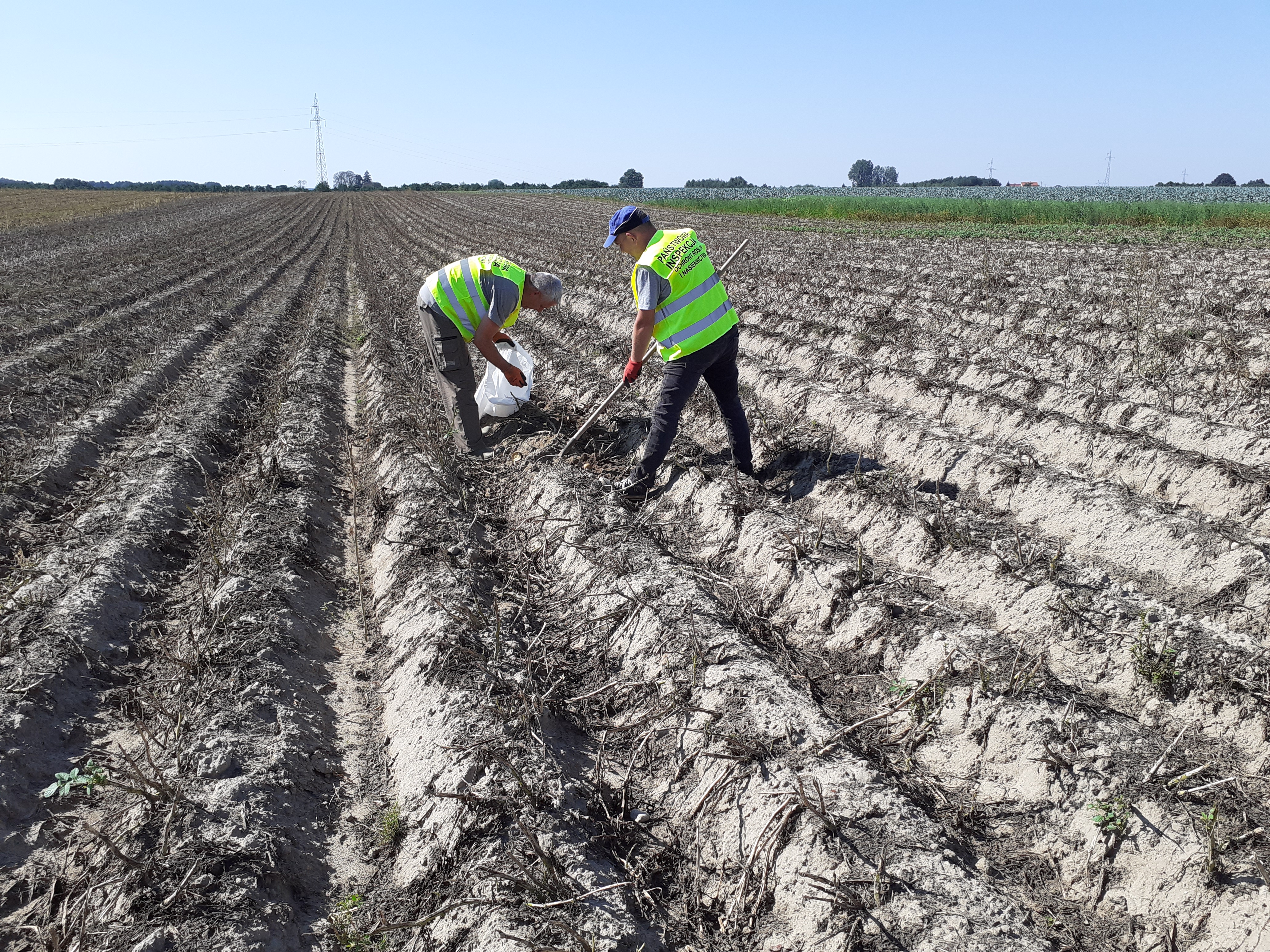Urzędowy próbobiorca pobiera próbę z plantacji o całkowicie zaschniętych lub zniszczonych częściach zielonych roślin przed ich wykopaniem, pomiędzy 10 a 20 dniem po zabiegu niszczenia naci. Całkowicie zaschnięte części nadziemne nie stanowią drogi wtórnego porażenia przez wirusy.