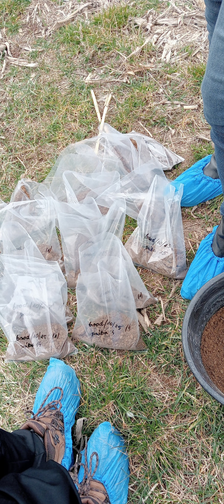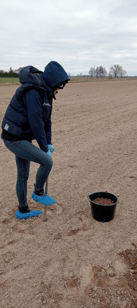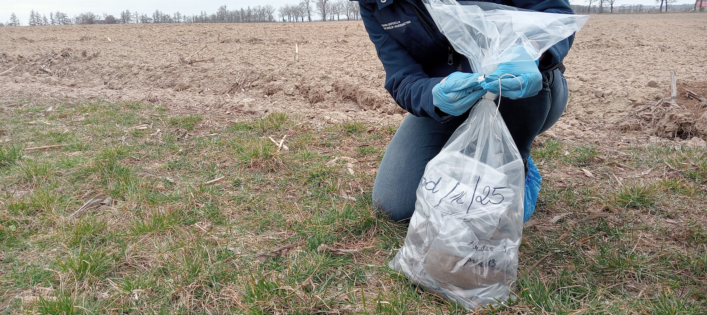 Pracownicy Wojewódzkiego Inspektoratu Ochrony Roślin i Nasiennictwa w Bydgoszczy dokonują pobrania próbek gleby do oceny laboratoryjnej zgodnie z określonymi metodykami. Działania te są wykonywane na zlecenie podmiotu.