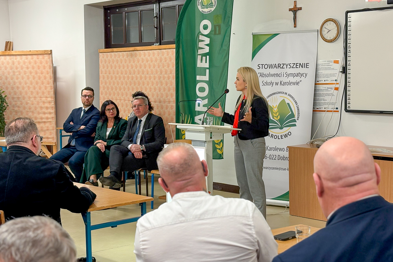27 listopada br. w Zespole Szkół Agro-Ekonomicznych w Karolewie odbyło się spotkanie z cyklu „Porozmawiajmy o Polskim Rolnictwie” z udziałem pani Małgorzaty Gromadzkiej, sekretarz stanu w Ministerstwie Rolnictwa i Rozwoju Wsi oraz pani Iwony Karolewskiej, posłanki okręgu bydgoskiego.