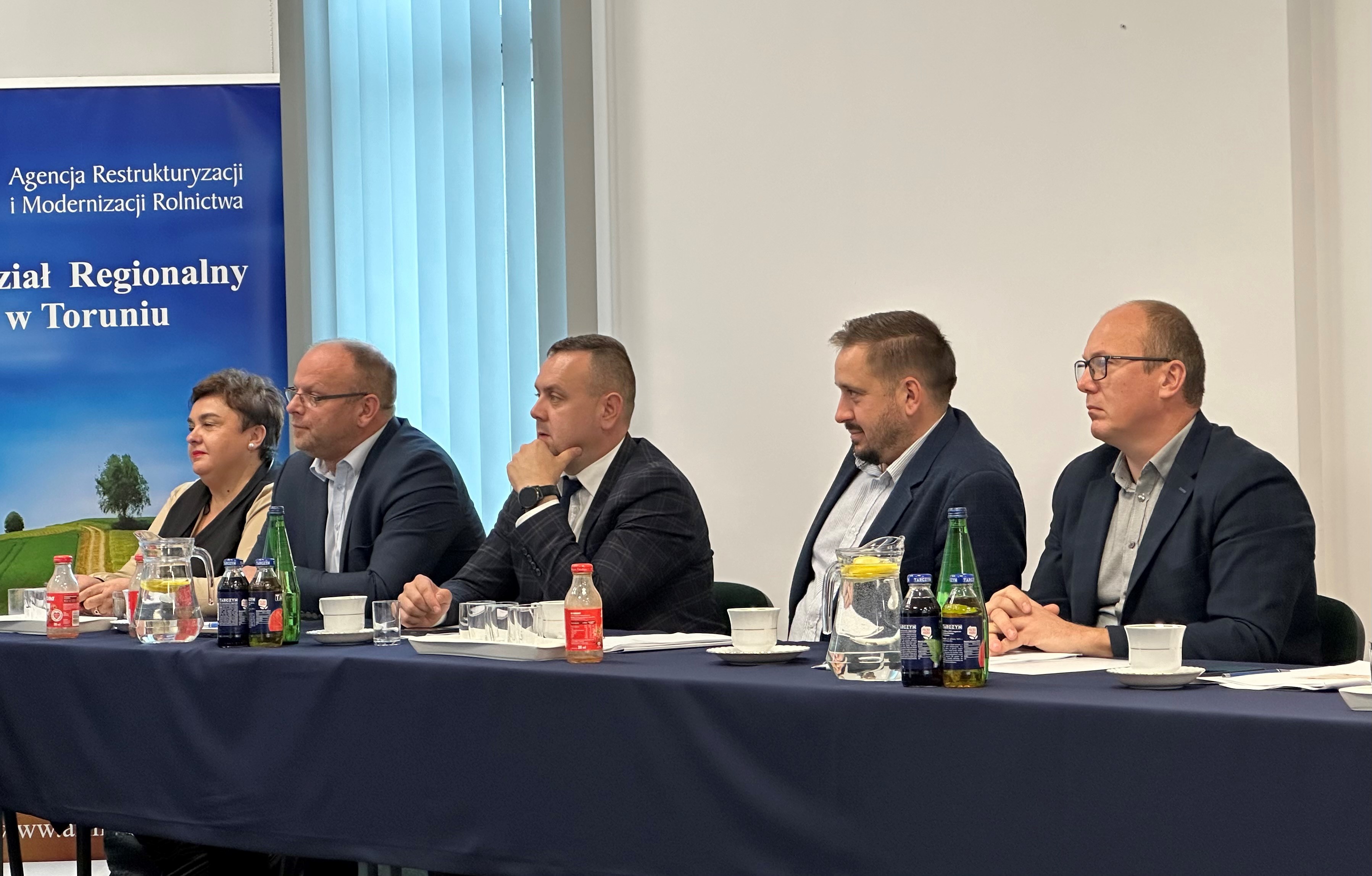 28 października br. w Toruniu odbyło się spotkanie zorganizowane przez Kujawsko-Pomorski Oddział Regionalny ARiMR, poświęcone bieżącym wyzwaniom w rolnictwie i przyszłości wspólnej polityki rolnej po 2027 roku. W spotkaniu wziął udział Pan Piotr Hemmerling – I Wicewojewoda Kujawsko-Pomorski oraz Pan Dariusz Kurzawa - Wicemarszałek Województwa Kujawsko-Pomorskiego.