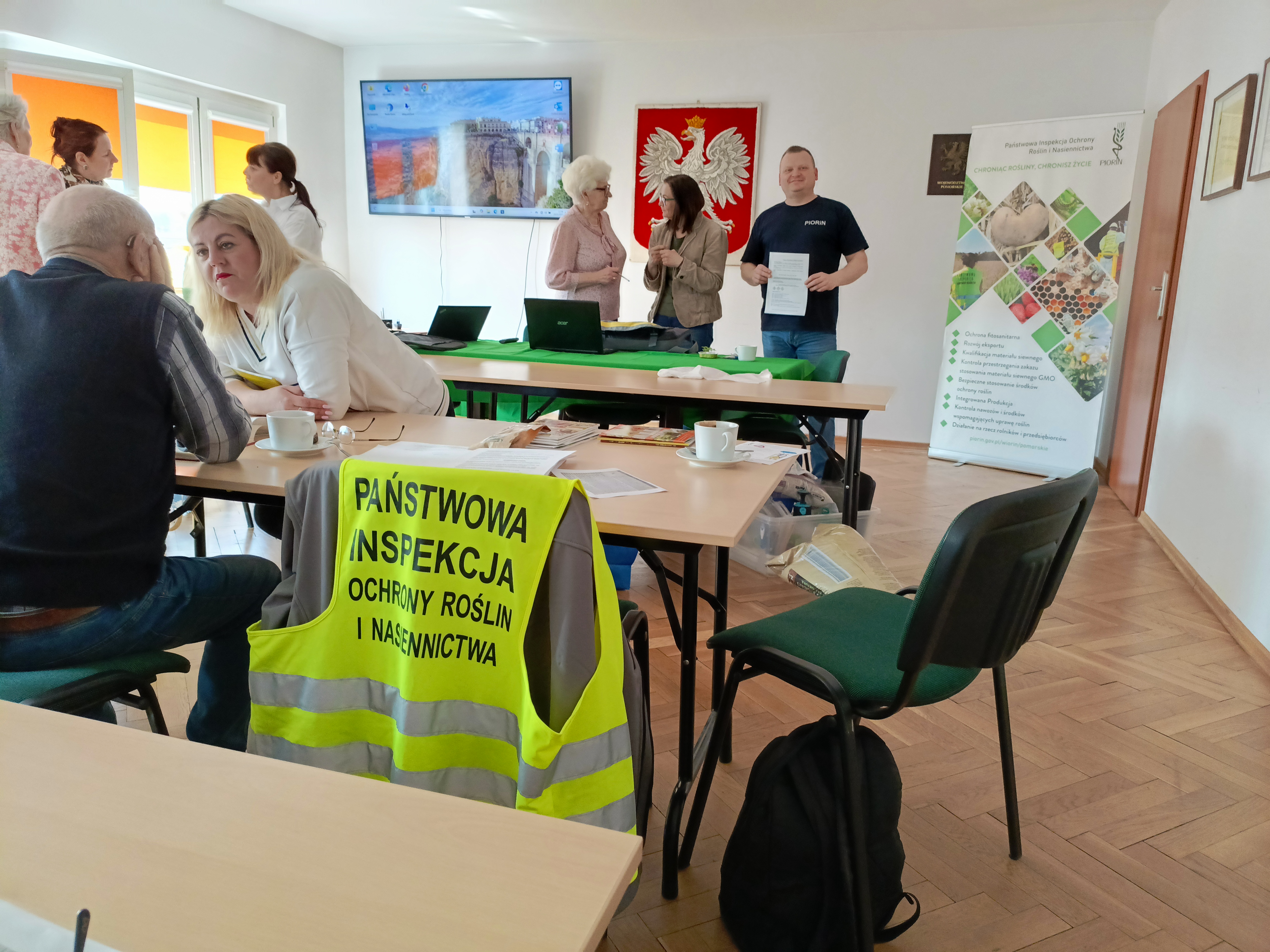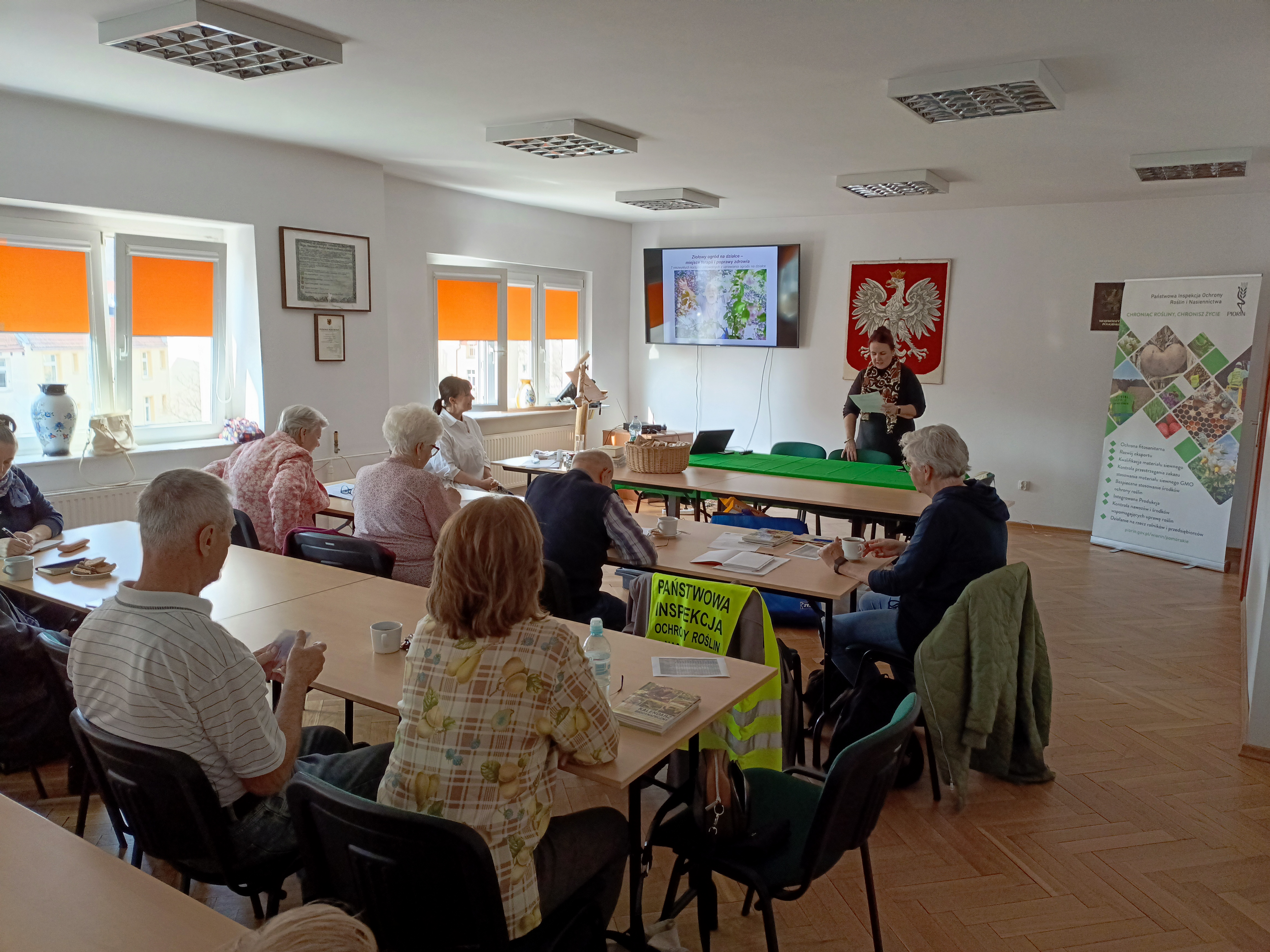 W związku z wykonywaniem obowiązków służbowych, w trakcie prezentacji Pan Kierownik omówił kompetencje i rolę Państwowej Inspekcji Ochrony Roślin i Nasiennictwa w sprawowaniu nadzoru nad wytwarzaniem produktów żywnościowych pochodzenia roślinnego oraz przybliżył temat związany z właściwym postępowaniem ze środkami ochrony roślin. Mając na uwadze ubiegłoroczne przypadki śmiertelnych zatruć ludzi środkami ochrony roślin zawierającymi w swoim składzie substancje aktywne fosforek glinu lub fosforek magnezu w trakcie spotkania omówiono prowadzony przez Wojewódzki Inspektorat Ochrony Roślin i Nasiennictwa w Gdańsku nadzór nad wprowadzaniem do obrotu oraz stosowaniem środków ochrony roślin Quickphos Tablets 56 GE, Quickphos Pellets 56 GE. Pan Grzegorz Drozdowski poinformował i uczulił słuchaczy, że zakupu ww. środków przez internet oraz w formie stacjonarnej mogą dokonać tylko osoby, które są pełnoletnie i posiadają aktualne szkolenie w zakresie środków ochrony roślin. Dodatkowo prelegent podkreślił, że przed każdym zastosowaniem omawianych środków należy zapoznać się z treścią etykiety, co zwiększa zachowanie bezpieczeństwa osób wykonujących zabiegi. Bezwzględnie takie zabiegi mogą wykonywać osoby, które posiadają szkolenie w zakresie stosowania środków ochrony roślin metodą fumigacji. Poruszono również problem zatrucia pszczół i owadów zapylających.