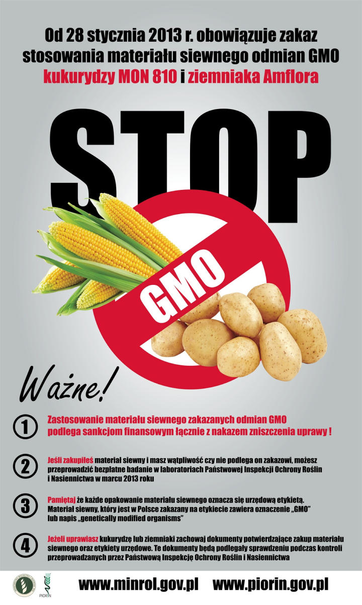 Zgodnie ze stanowiskiem RP przyjętym w roku 2008 oraz art. 49a ustawy z dnia 22 czerwca 2001 r. o mikroorganizmach i organizmach genetycznie zmodyfikowanych (Dz.U. z 2022 r. poz. 546) Rzeczpospolita Polska jest krajem wolnym od upraw GMO.