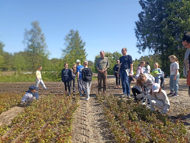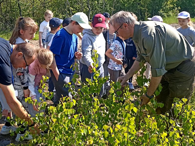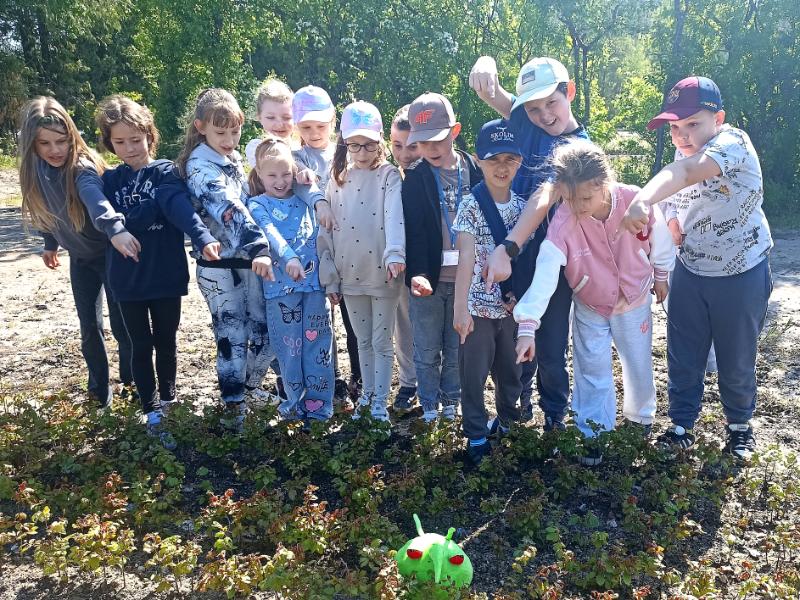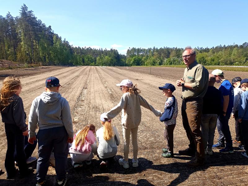 Następnie zostaliśmy oprowadzeni po szkółce leśnej, gdzie dzieci mogły się zapoznać z wieloma gatunkami drzew i krzewów na różnych etapach rozwoju. Uczniowie dowiedzieli się czym, charakteryzują się poszczególne gatunki, jakie wydają owoce, jak należy pielęgnować i chronić rośliny przed agrofagami, mrozem czy suszą oraz przyjrzały się uszkodzeniom mrozowym na wierzchołkach młodych buków.