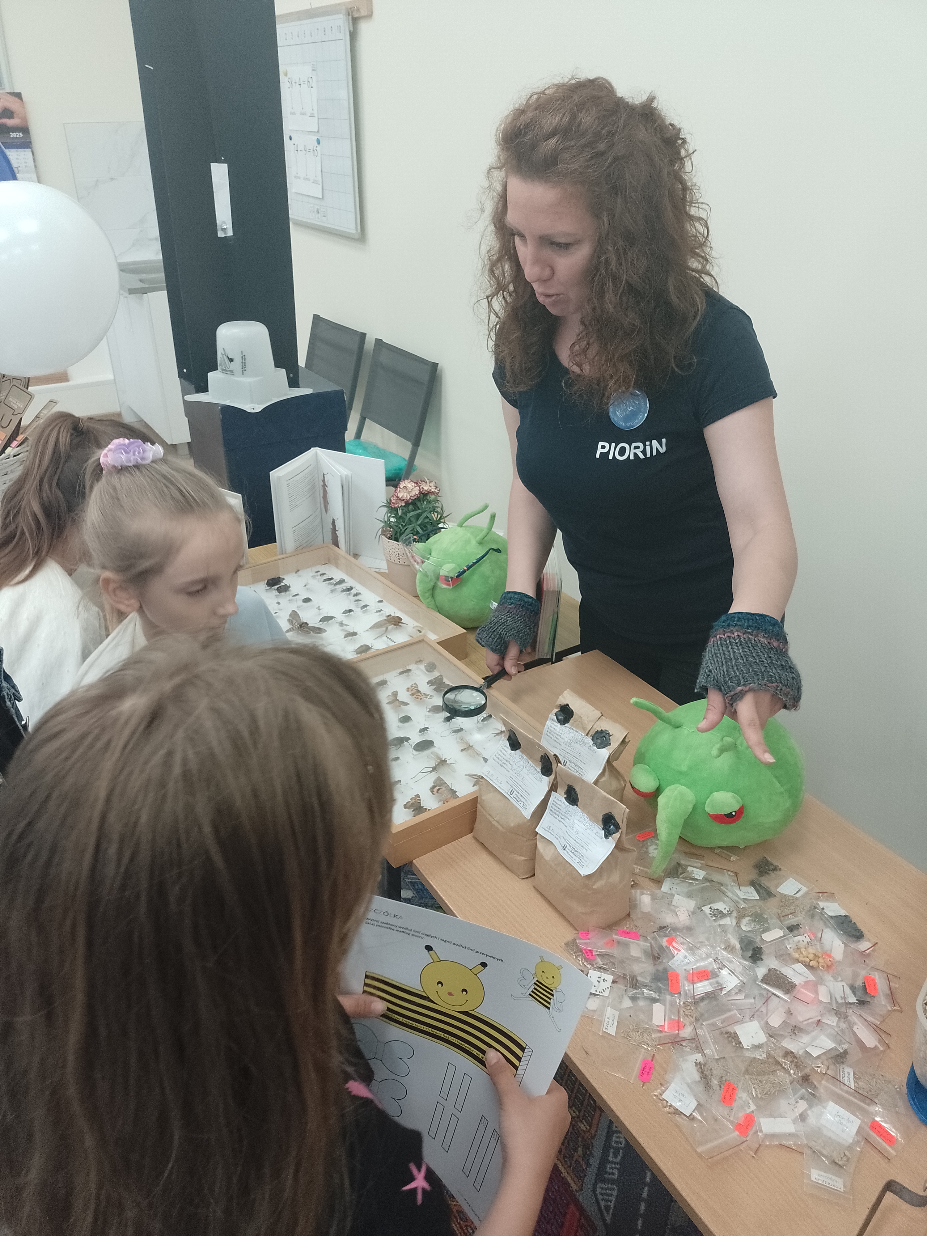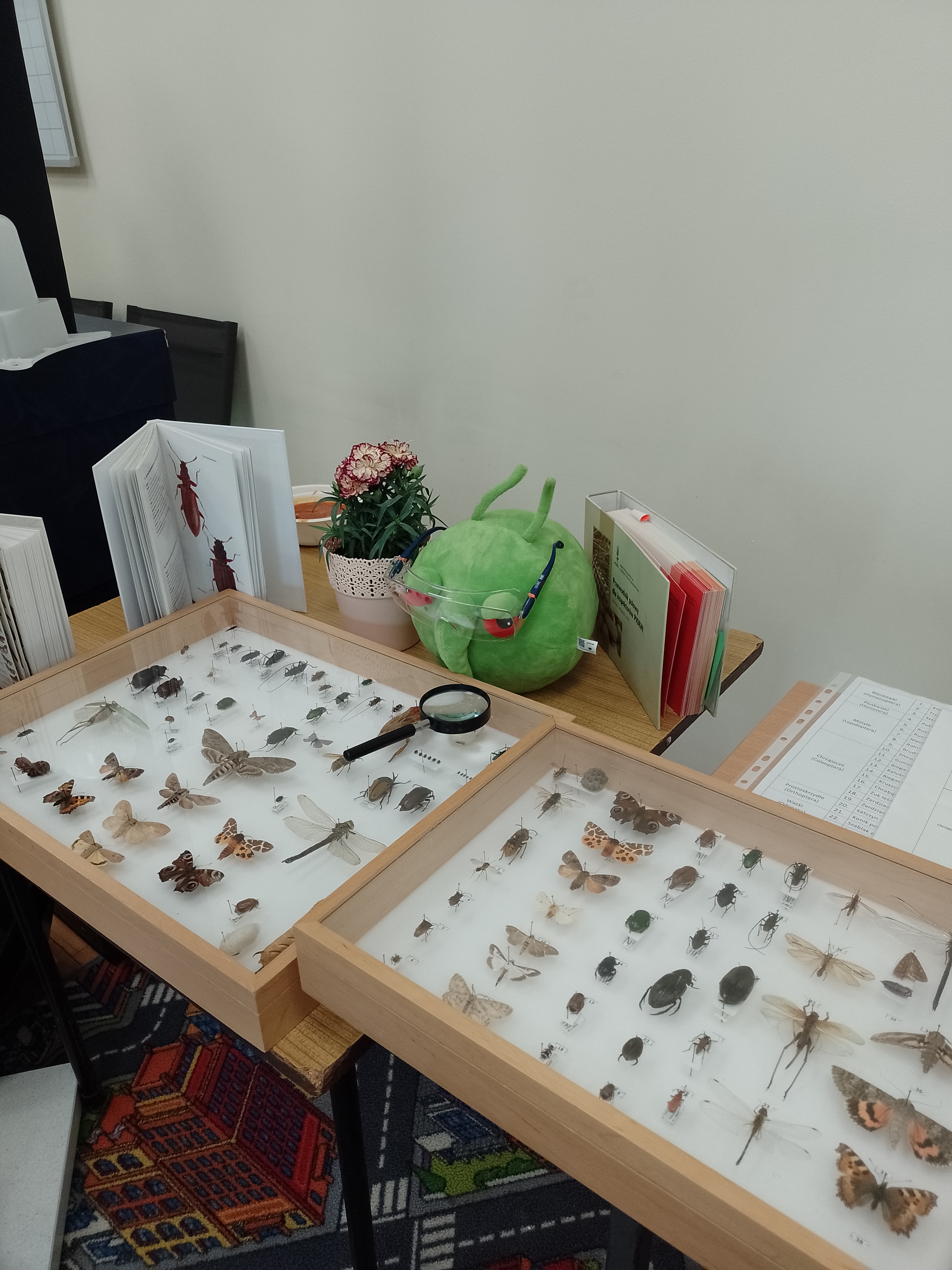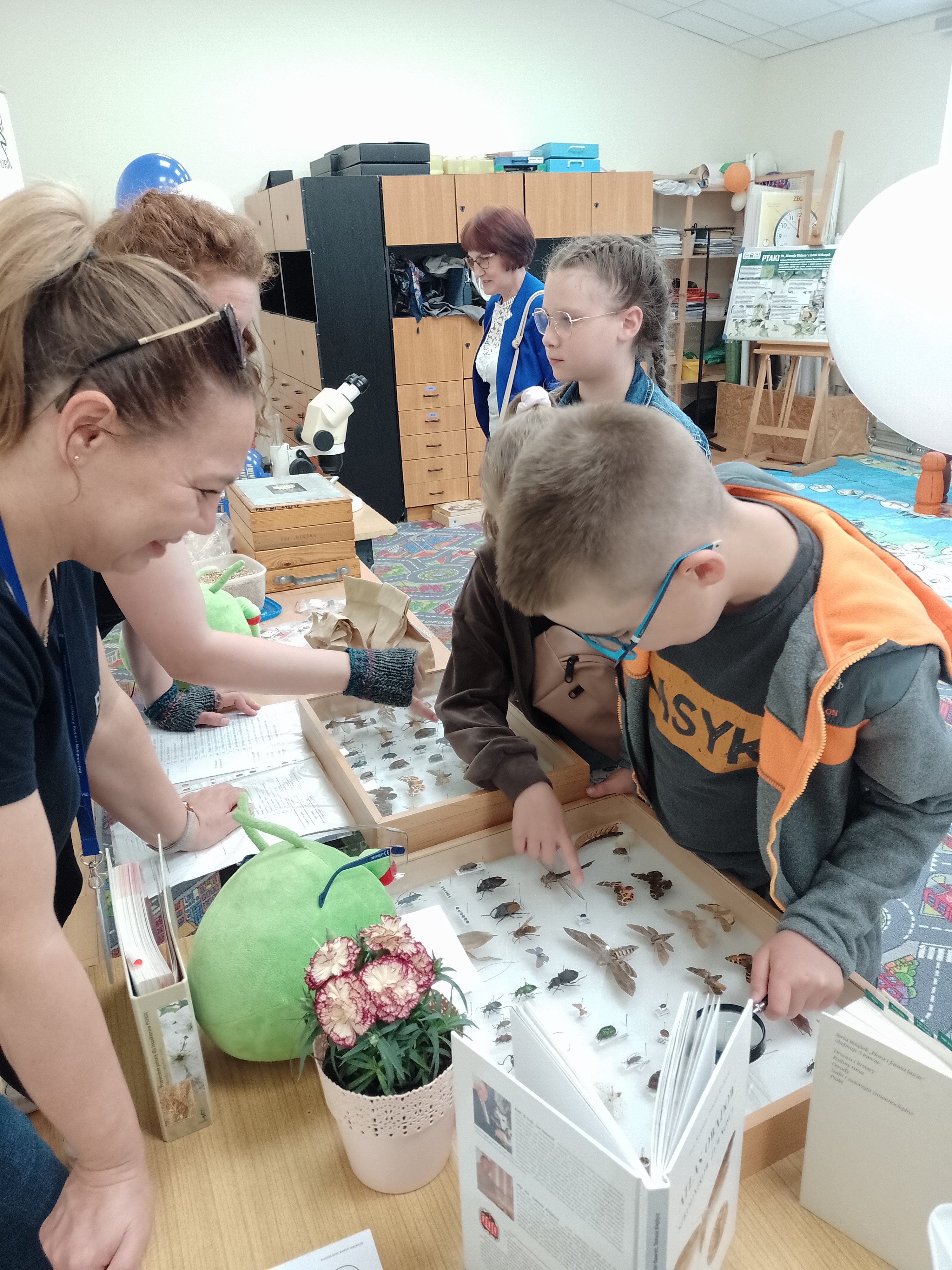 - pooglądać gabloty i książki z owadami i dzięki temu zobaczyć jak świat owadów jest bogaty i różnorodny;