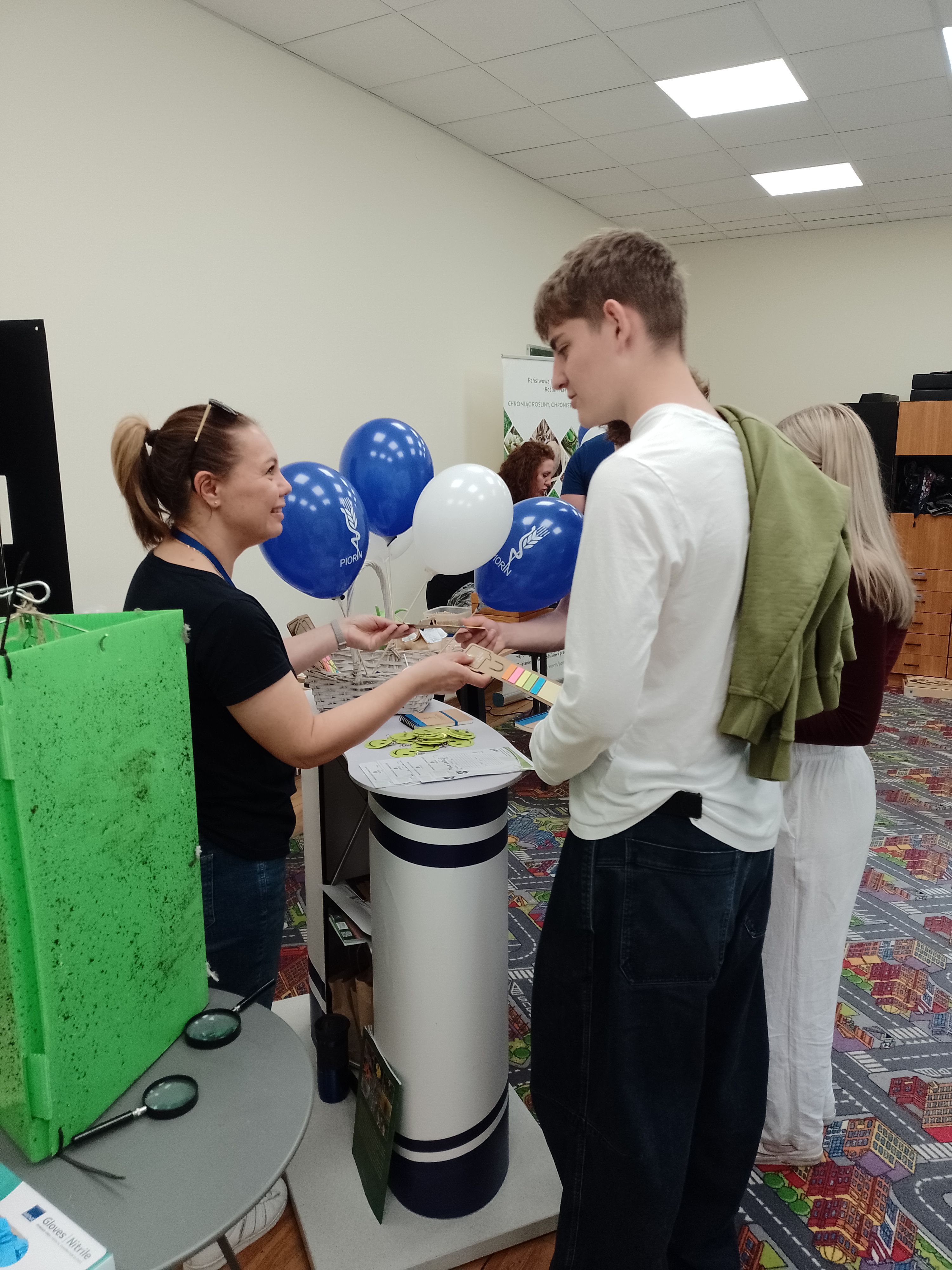 Odwiedzający stanowisko Wojewódzkiego Inspektoratu Ochrony Roślin i Nasiennictwa w Gdańsku za swoje zaangażowanie i otwartość na pracę inspektora zostali nagradzani m.in. notesami, planami lekcji, słodyczami i balonikami.