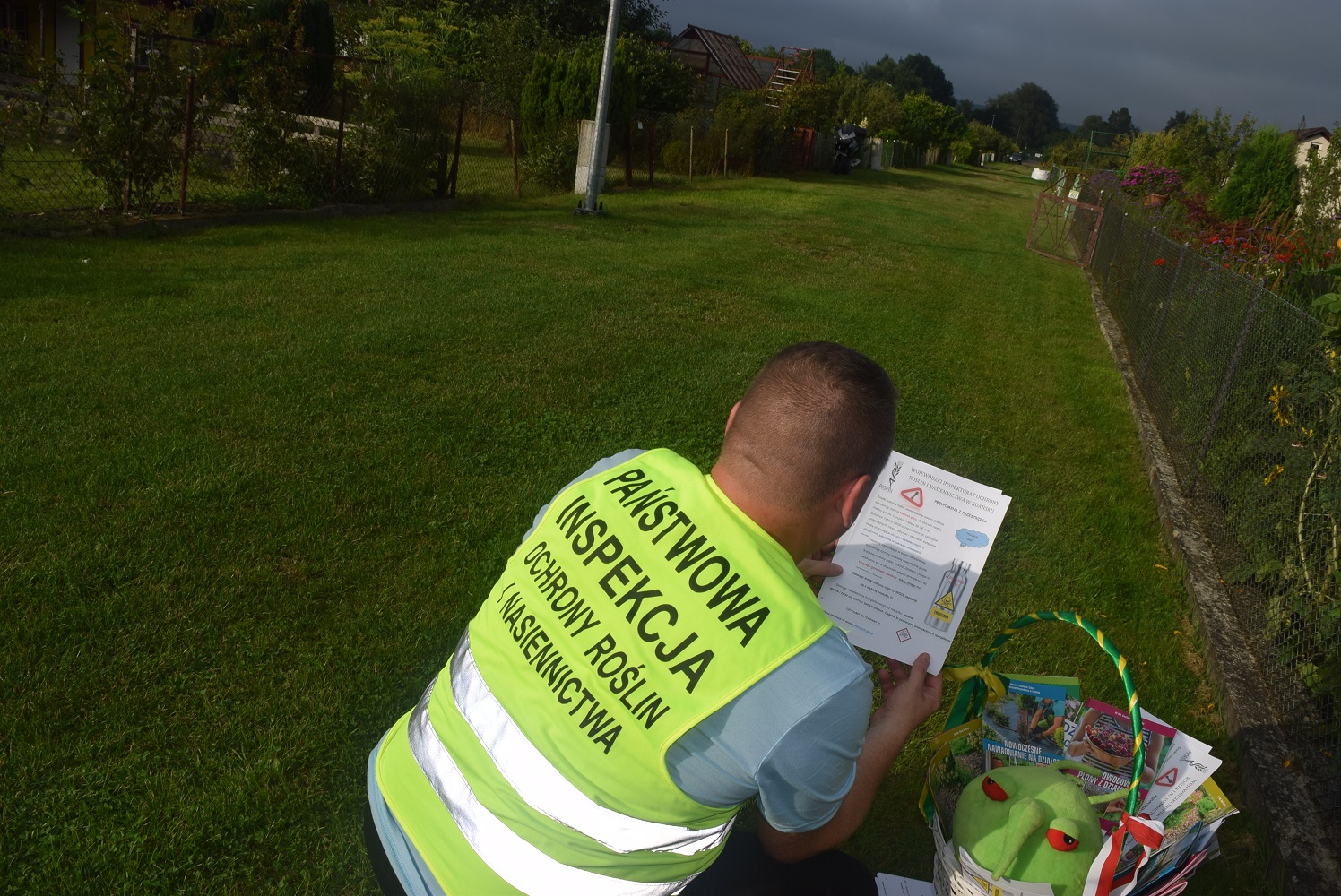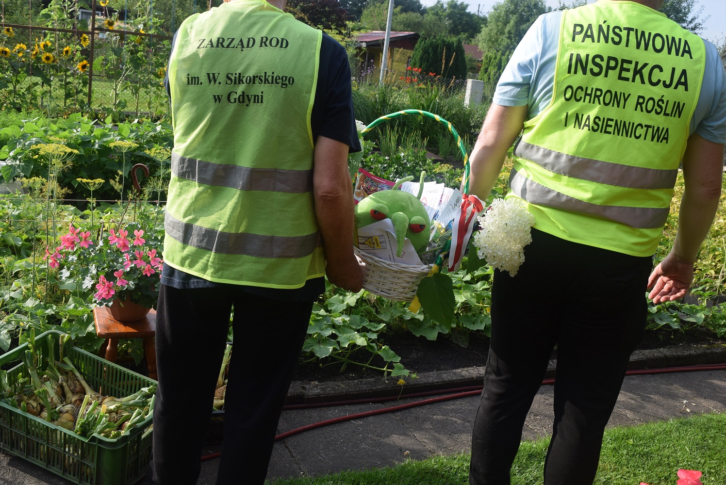 PESTY wspólnie z inspektorem WIORiN w Gdańsku oraz członkami Zarządu ROD i Działkowcami drugiego dnia udali się na zwiedzanie Rodzinnego Ogrodu Działkowego im. gen. W. Sikorskiego w Gdyni. „Zielony agrofag” chętnie zapraszany był przez działkowców na ich działki, gdzie miał okazję przyjrzeć się żywności produkowanej przez działkowców. Nie stronił od pozowania do zdjęć na tle zdrowych zagonków warzywnych, czy też roślin ozdobnych. Wspólnie zbierał cebulę i czosnek. W ten sposób przekonał się, że działkowcy bardzo dobrze dbają o zdrowie roślin, co przekłada się na ich zdrowie. PESTY zapowiedział, że nie była to ostatnia wyprawa na Rodzinne Ogrody Działkowe…
