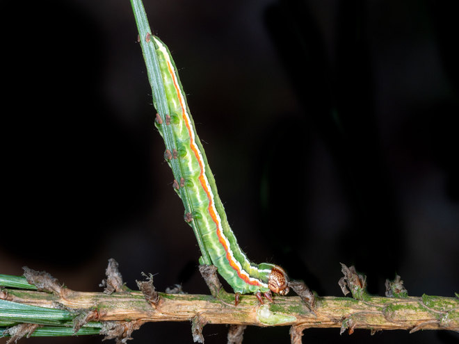 Prowadzone zabiegi przy użyciu środków ochrony roślin w drzewostanach sosny zwyczajnej (Pinus sylvestris L.) dotyczą zwalczania organizmu szkodliwego strzygoni choinówki (Panolis flammea)