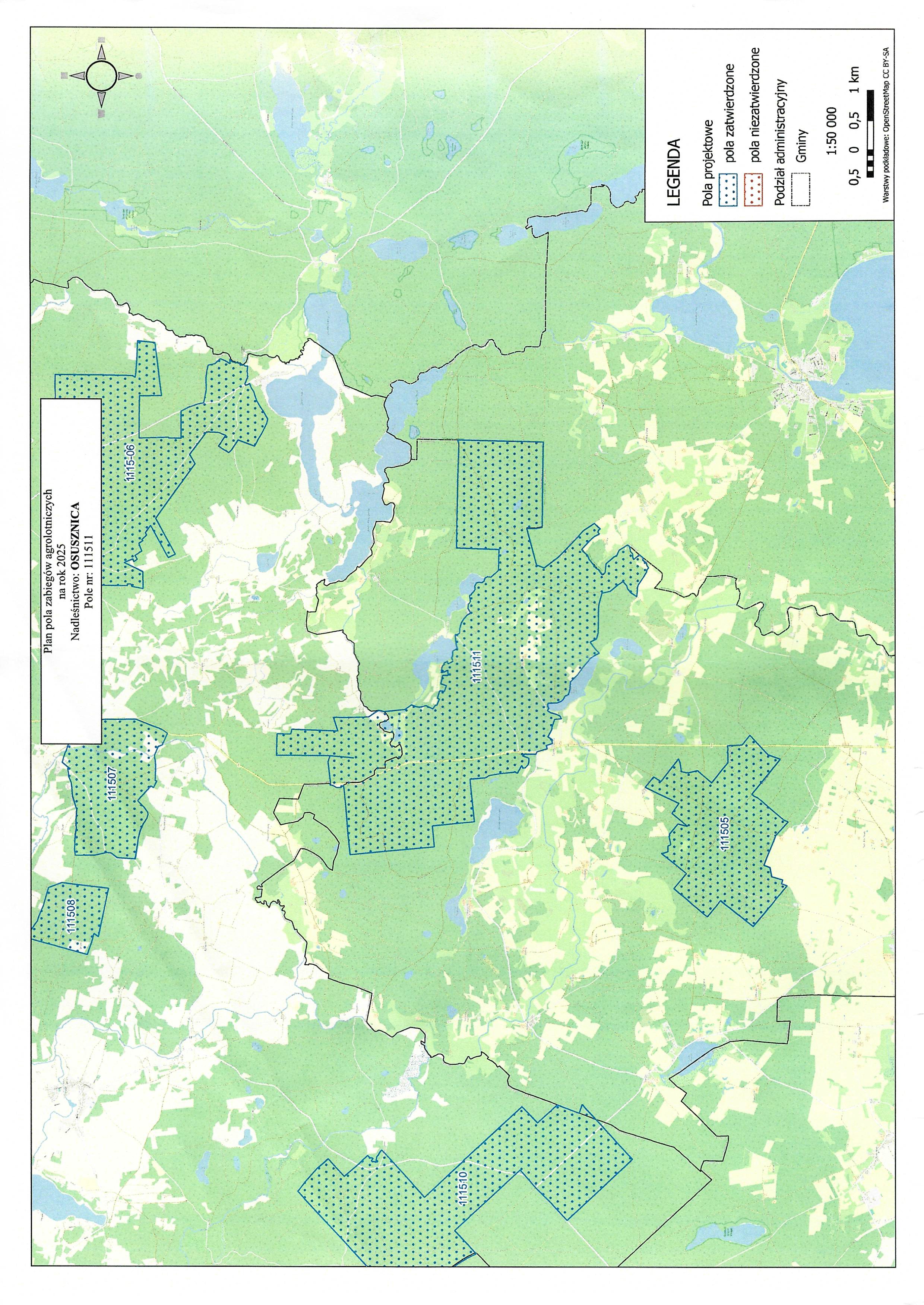 | Obszar objęty planowanym zabiegiem | Lokalizacja | Nazwa zastosowanego środka ochrony roślin | Termin zabiegu | Czas po zastosowaniu środka ochrony roślin, w którym ludzie i zwierzęta gospodarskie nie powinni przebywać na obszarze objętym planowanym zabiegiem |