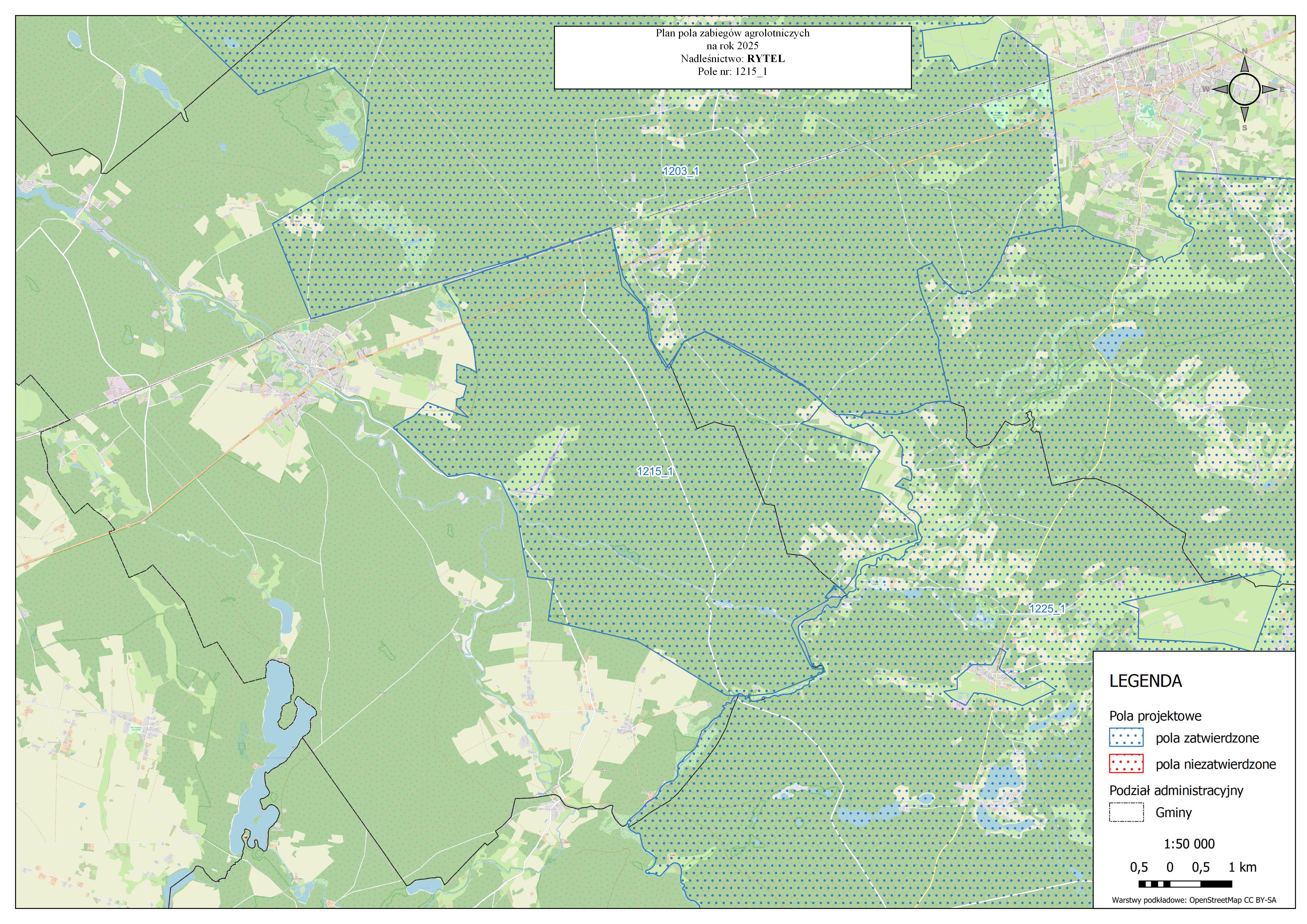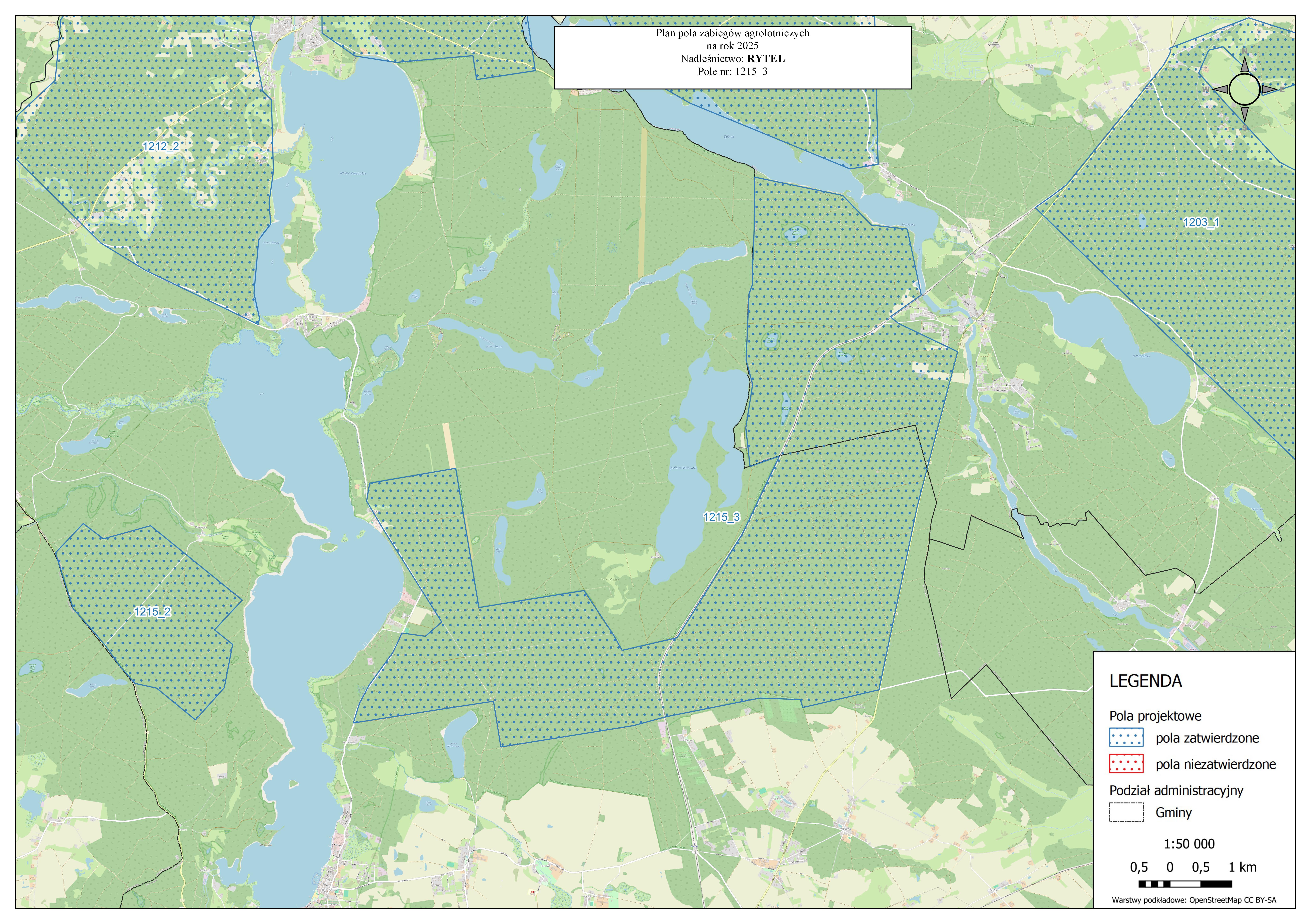 | 6543,3 ha | Nadleśnictwo Rytel | Foray 76 B | 01.05 – 30.06.2025 r. | Nie wchodzić do czasu całkowitego wyschnięcia cieczy użytkowej na powierzchni roślin. |