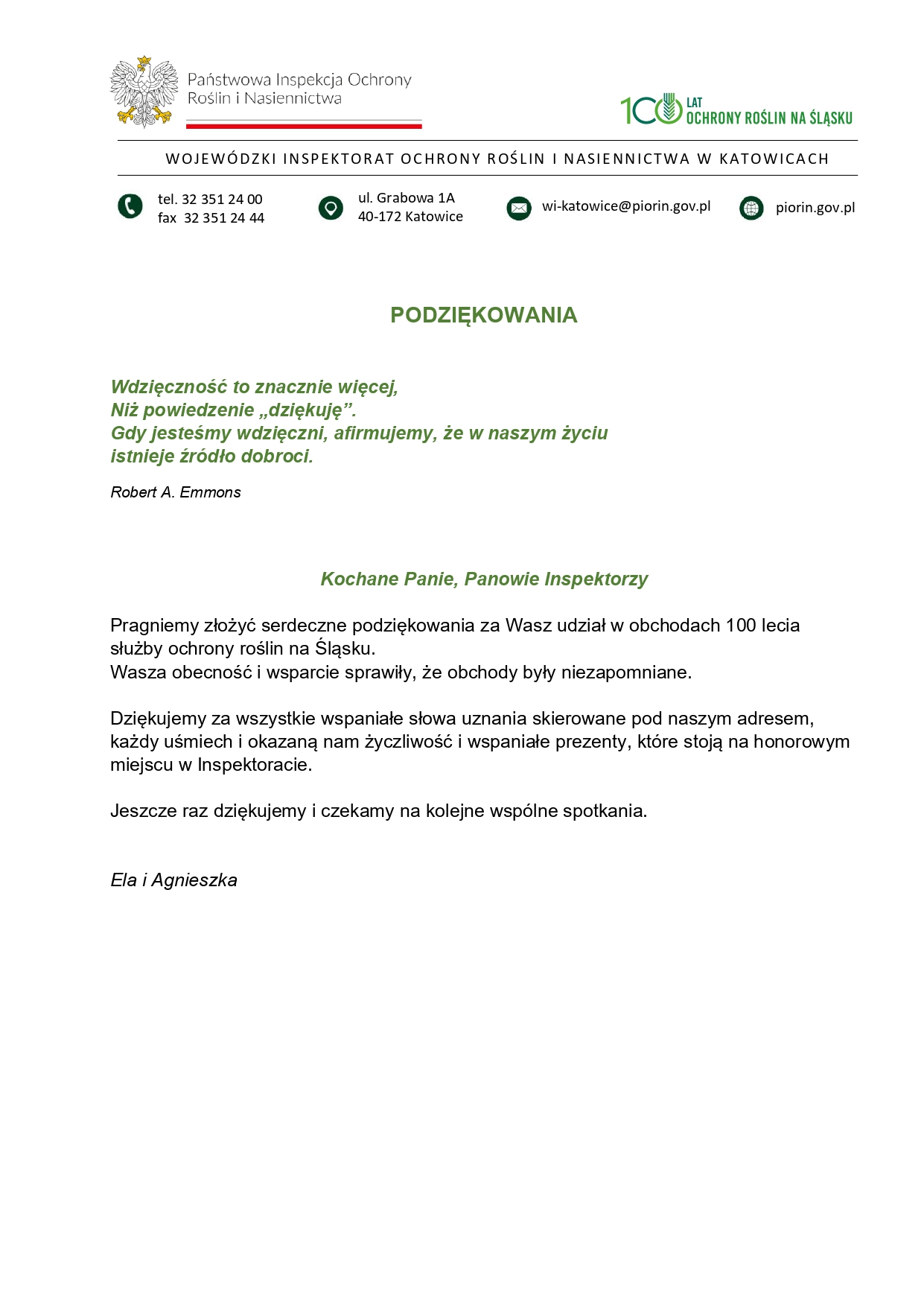 Z okazji tego szczególnego jubileuszu Wojewódzki Inspektor składa serdeczne gratulacje oraz wyrazy uznania wszystkim osobom zaangażowanym w rozwój i doskonalenie działań na rzecz zdrowych upraw, bezpieczeństwa żywności i ochrony środowiska. Życzymy dalszych sukcesów, satysfakcji z pracy oraz wielu kolejnych lat owocnej działalności dla dobra rolnictwa i przyrody.