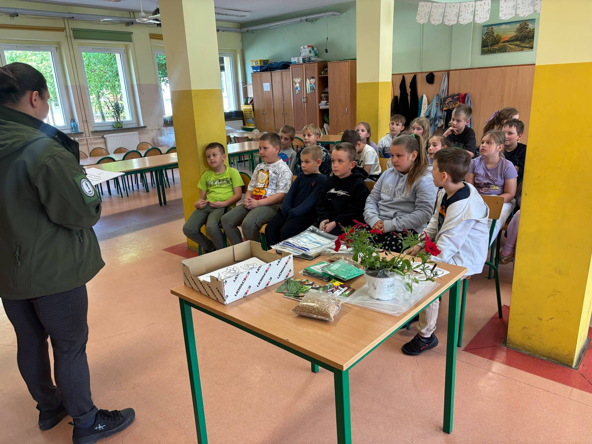 Dnia 9 maja 2025 r. Pani Julita Nawrocka przedstawicielka Wojewódzkiego Inspektoratu Ochrony Roślin i Nasiennictwa w Gorzowie Wlkp. (Oddział Terenowy w Lubsku) przeprowadziła ciekawe spotkanie z dziećmi z klasy 1A i 2B w Szkole Podstawowej nr 2 w Lubsku. W trakcie spotkania dzieci dowiedziały się na czym polega praca Inspekcji Ochrony Roślin i Nasiennictwa. Pani Inspektor opowiedziała jak ważna jest praca Wojewódzkiego Inspektoratu Ochrony Roślin i Nasiennictwa dla Polskiego Rolnictwa. Uczniowie mieli okazję zobaczyć ziarna zbóż t.j.: pszenicę, żyto, a także nasiona szczypiorku i sałaty. Poznali również paszport roślin i etykietę materiału siewnego. Dzieci czynnie uczestniczyły w spotkaniu dzieląc się swoją wiedzą na temat roślin, warzyw i szkodników występujących w ich ogrodach. Następnie był czas na zadawanie pytań, których - jako to dzieci - miały bardzo dużo. Najbardziej ciekawa była część praktyczna – Pani Julita uczyła dzieci jak prawidłowo wysiewać szczypiorek i sałatę. Uczniowie w nagrodę dostali kolorowanki kwiatów wiosennych.