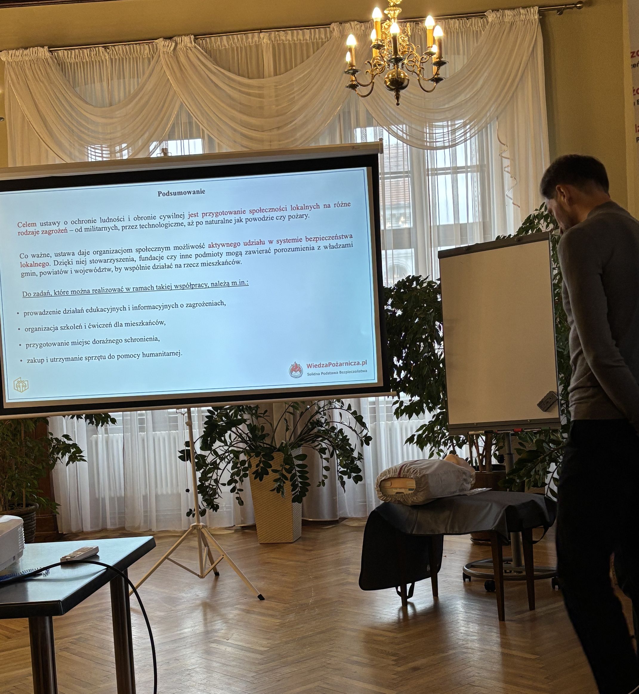 Burmistrz Świebodzina pan Tomasz Olesiak, w ramach uzyskanego dofinasowania Wojewody Lubuskiego, zorganizował szkolenie związane z realizacją zadania Program Ochrony Ludności i Obrony Cywilnej