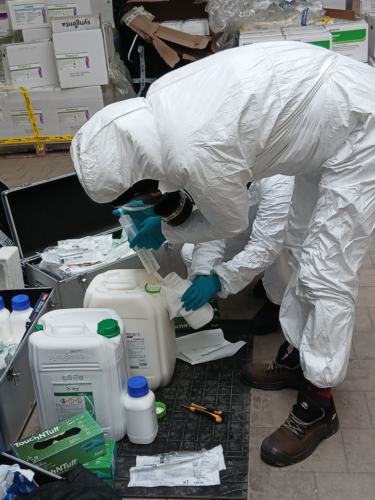 Przykładem takich działań były kontrole przeprowadzone w kwietniu w magazynach zlokalizowanych na terenie powiatu Świebodzin, Żagań i Sulęcin. Pobrano m.in. próbki z kanistrów o pojemności 10 litrów, z których pobrano dwie próbki o objętości 0,5 litra każda. Cały proces przeprowadzono z zachowaniem odpowiednich środków bezpieczeństwa – próbobiorcy byli wyposażeni w kombinezony ochronne, maski z filtrami oraz rękawice ochronne, a powstałe odpady zostały właściwie zabezpieczone.